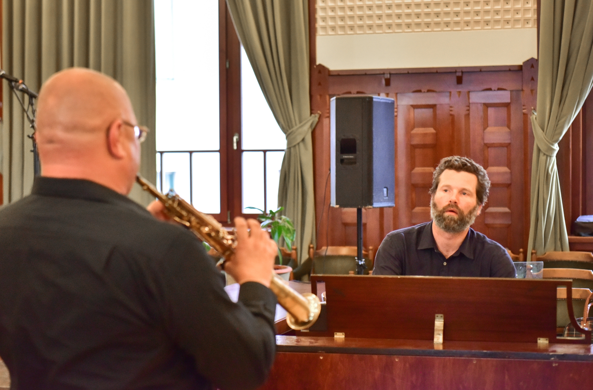 Szokolay Dongó Balázs szempillantás alatt „varázsolta” át a Dunamelléki Egyházkerület székházának dísztermét ködös, sejtelmes, misztikus erdélyi tájjá, Fassang László orgonajátéka tökéletes kísérője volt ennek az átváltozásnak. Nem csak „tájat láttam magam előtt”, de kurjantó székely legények táncát is „csodáltam”, az egyik darabnak az előadók orgonatánc címet adtak, a nézősorokban többen elkezdtek táncolni a zene hatására. Újból csak kiemelni tudom: ezt Hammond-orgona és népi hangszer közösen váltották ki a hallgatóságból!