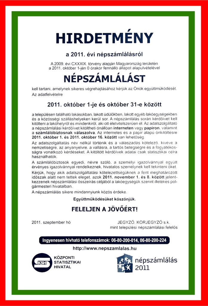 Magyarországon általában tízévente tartanak népszámlálást. A legutóbbi 2001-ben volt, így idén október 1-jétől újra megkezdődik a lakosság összeírása.