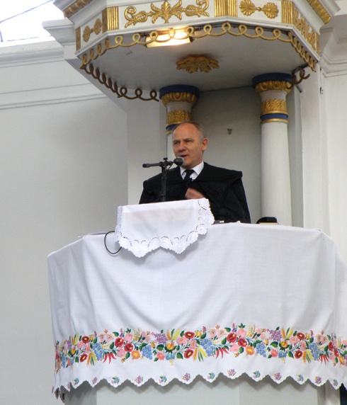 Az istentiszteleten igét hirdetett dr. Bogárdi Szabó István a Dunamelléki Egyházkerület püspöke, aki a Máté evg. 26:69-75; alapján Péter életének drámai pillanatain keresztül világított rá arra, hogy az ember és Isten kapcsolata dinamikus kapcsolat. Vagy közeledünk Istenhez, vagy távolodunk tőle. Péter életében minden úgy történik, ahogy Jézus mondja. Ma is nehéz Krisztus követőjének lenni, amikor csúfolják a Mestert. Ez a történet a síró Péterben bemutatja nekünk azt a másik Pétert is, aki nem a keresztre menő Jézus hátát látja, hanem szemtől - szemben van a Feltámadottal. János evangélista feljegyzi, akkor is sír Péter, de már nem azt mondja: „Nem ismerem azt az embert", hanem ezt: „Uram, te mindent tudsz, te tudod, hogy szeretlek téged". Háromszor megtagadta, most háromszor vallja, hogy szereti az Urat. Ez az Isten titka. Pétert a jézusi szeretet fényében látjuk. S mi is csak akkor tudunk keresztyének lenni és maradni, ha a jézusi szeretet fényében látjuk magunkat. A csodálatos Feltámadott kegyelme és szeretete leül a tagadóval és kérdezi: „Szeretsz-e engem?" Ebben a kérdésben az is benne van: „Van közünk egymáshoz Péter?" S benne van a válasz is: „Van közünk egymáshoz Péter." Közöd van hozzám. Püspök úr kéri, hogy a beiktatandó nagytiszteletű asszony szüntelenül emlékeztesse a Foktői gyülekezetet arra, hogy Krisztushoz tartoznak. Mert Krisztus ma is ezt üzeni: „Közöd van hozzám." De jó, hogy nem hagy békén az Isten! Kérdez: „Szeretsz-e engem? S adjuk meg azt a választ, ami sokaknál hosszú úton keresztül születik meg: „Uram, Te mindent tudsz, te tudod, hogy szeretlek téged." Hiszem, hogy Isten szereti a Foktőieket. S a lelkipásztor által is szüntelenül emlékeztetni fogja arra, hogy Isten azt mondja: „Enyém vagy! Szeretlek téged." Kérem az új lelkipásztort, hogy az Úr Jézus Krisztus erejében, Isten kegyelmében, a Szentlélek hatalmában emlékeztesse a gyülekezetet arra, hogy Isten Jézus Krisztus által meghívott az igaz életbe. Hiszem, hogy a Foktői gyülekezet közeledik az Istenhez.-