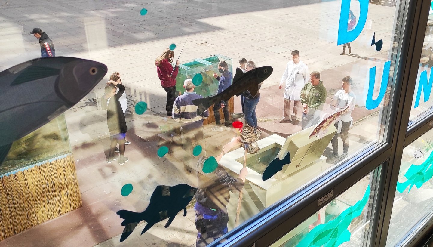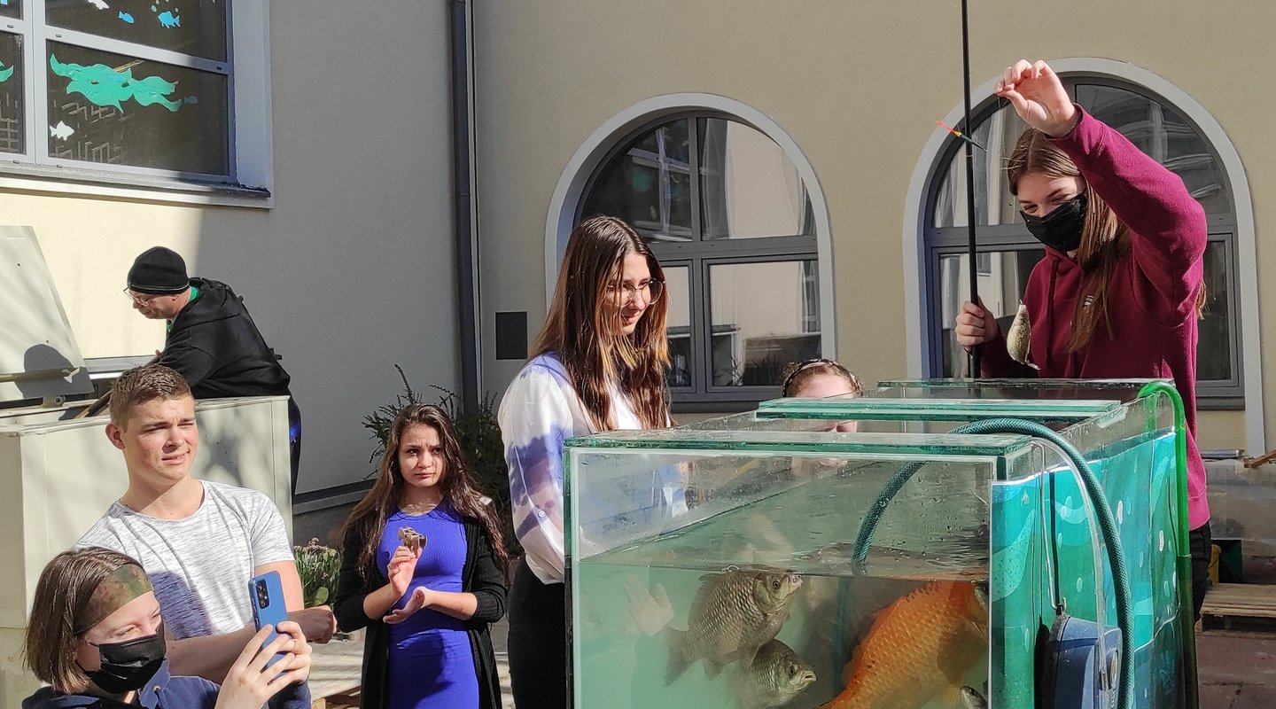 Keddtől az iskolaudvaron elhelyezett akváriumokban diákjaink magyarországi édesvízi halak különböző fajait vehették szemügyre az üvegen keresztül, a Balatoni Halgazdálkodási Nonprofit Zrt. haltermelési igazgatója, Fodor Ferenc jóvoltából.