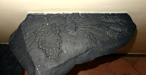 A szőlő melletti kőpolcba két halat véstek. Ez a bibliai öt kenyér és két hal csodáját juttatta eszembe, amikor a tanítványok megvendégelték a sokaságot, nehogy a fizikai éhség elfeledtesse velük a lelki éhség kielégítésének vágyát.