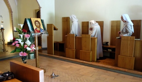 A Vendégházhoz egy pici kápolna is tartozik. Puritán téglaoltárának előlapjába a kereszt mellé beépítettek két fosszíliát, két megkövesedett halat, amit valamelyik apáca talált egy kirándulás során. Kreativitás, bibliaismeret, üzenet.