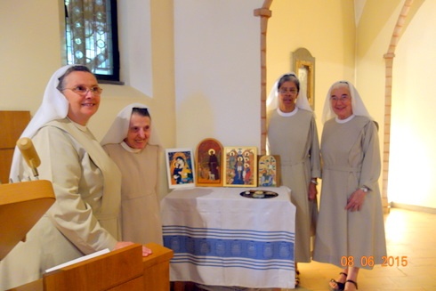 Május végén festő-restaurátorként módom nyílt egy római ikonfestő- és restaurátorkurzuson részt venni. Olcsón kaptunk szállást a Róma külvárosához tartozó Figlia della Chiesa kolostoregyüttes hátsó telkén, a Santa Maria del Silentio nevű kolostorban. A Fiumicino repülőtér irányában Ponte Galeria településig vonattal, onnan személyautóval lehet megtenni a 10–15 perces utat, így a készséges apácák hoztak-vittek minket, sokszor három autóval, ha be akartunk menni Rómába. A kurzus szervezője jól ismeri a kolostor életét, nem véletlenül szervezte ide az utat. Egy római ikonrestaurátor az ősi orosz ikonfestők anyagaival ismertetett meg bennünket. Sokat tanultunk tőle, nemcsak anyagismeretet, de lelkiséget is. A szakrális kép üzenetet hordoz. Ikonnal foglalkozni nem is szabadna kevésbé méltó helyen.