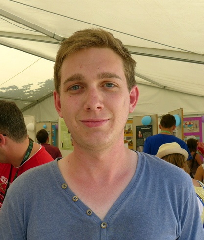 Egy másik fiatallal a társadalmi felelősségvállalást taglaló plakátok előtt találkozom.
