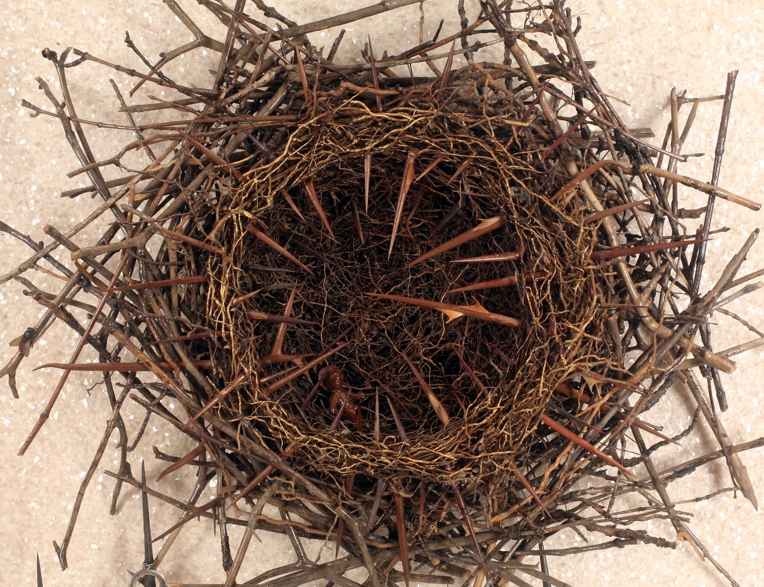 • Prutkay Péter: Töviskoszorú, 1988, objekt, 65x65 cm (részlet, Kecskeméti Katona József Múzeum)