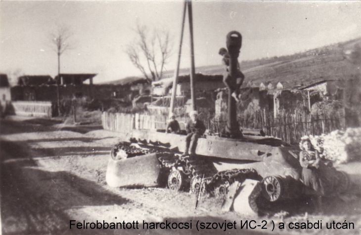 „Közben azonban egyre több német alakulat meglehetősen rendezetlen állapotban vonult nyugat felé Csabdin keresztül, ami azzal járt, hogy bizonytalan időre beszállásolták magukat a faluba, elsősorban a nagy épületnek számító parókiánkon. Annyira tele voltunk németekkel, hogy amikor a szüleim úgy döntöttek, hogy mégis visszajönnek Csabdira, mert ellehetetlenült a helyzetük a Csepel-szigeten, már csak a Posta épületében tudtuk elhelyezni őket”