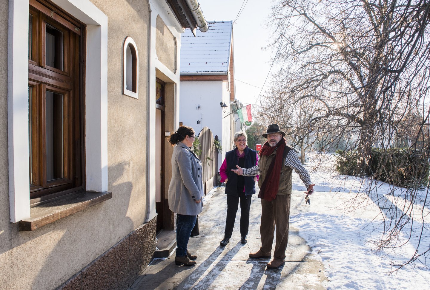 Míg Ildikó teát főz a ház lelkének számító, otthonosan meleg konyhában, férje, Levente Péter, generációk Móka Mikije, az Égbőlpottyant mesék mesemondója a tornácon pipázik. Üde, csillogó, tiszta téli nap kezdődik, a vidám égbolt, Rozsdi kutya üdvözlése, a glédában álló tűzifa és a házikó megannyi apró szépsége egy mesekönyv lapjait idézi. A hangulat, melybe a pipafüst komolysága és nyugalma is csöndesen utat tör magának, tökéletesen illik a házaspárhoz.