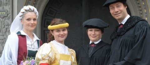 Ez a kérdés, ha nem is éppen poétikus formában, a mai városvezetés számára sem közömbös. Olyannyira nem, hogy a már húsz esztendeje elkezdett Martin Luther–Katharina Bora-esküvőket évről évre új elemekkel gazdagítják. Ez idén például a felnőtt korú Katja Wartmann és Arne Lietz mellett egy szép kis tizenéves pár, Josefine Hein és Fabian Mathes is eljátszotta a mátkapár szerepét, hogy az ifjabb generációkat is közelebb vigyék a reformáció kezdeteinek világához.