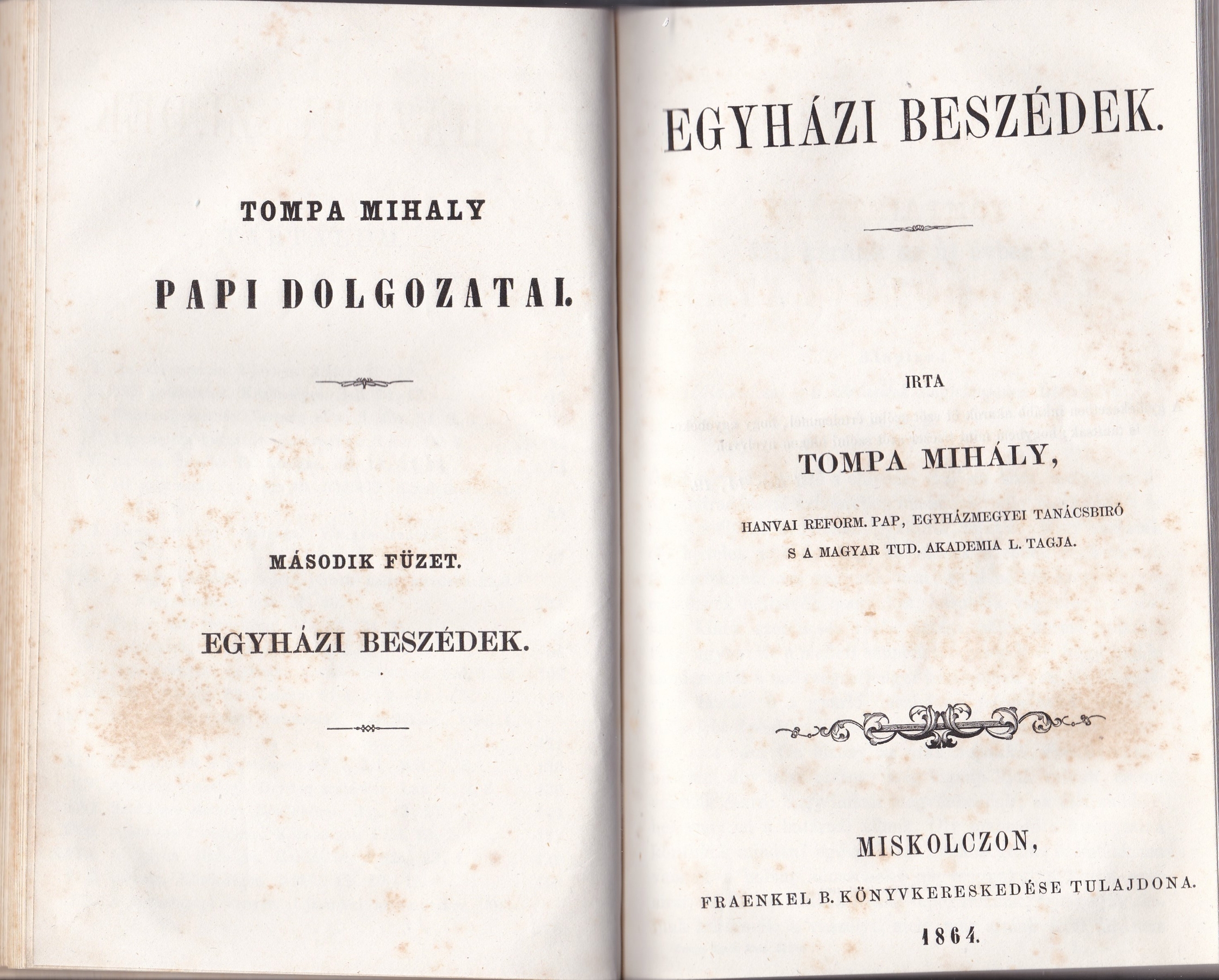 Tompa Mihály rendkívüli szónok és népszerű prédikátor volt. Négy kötetben több, mint 100 prédikációja jelent meg nyomtatásban. 1854-ben adták ki első prédikációs kötetét Egyházi beszédek címmel. A gyűjtemény 24 prédikációt tartalmaz, Szász Károly püspök ajánló soraiból idézek: „A mi a tárgyak kivitelét illeti, (e szóba foglalva az első alapeszme után mindent a kész predikátióig, tehát kiindulást, felosztást, kifejtést, irályt) ez oldalról bátran állíthatom, hogy könyvet magasabb igényekkel rég nem vettem kezembe, elégültebben tán sohasem tettem le, mint Tompa Egyházi beszédeit. Itt együtt van minden, amit kidolgozott predikátiótól várni, kívánni, sőt óhajtani is lehet.”