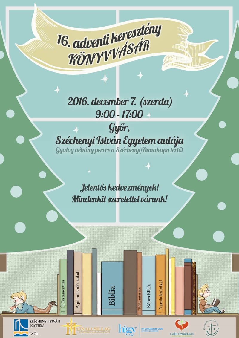 A győri Széchenyi István Egyetem aulája újra helyet ad a régóta kedvelt Adventi Keresztény Könyvvásárnak, melyen ökumenikus jelleggel számos keresztény/keresztyén felekezet könyvkiadója képviselteti magát.