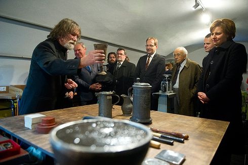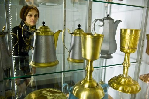 Aki pedig mindezt meg is tudja csinálni: Ötvös Nagy Ferenc. Az ötvös vezeti az edukációs foglalkozásokat és a restaurációt is. Szakmája ötvös, neve is jól jelzi ezt – igaz felvett, ezért is beszédes névről van szó. Régóta várt már arra, hogy lakhelyén dolgozhasson, mert az elmúlt tizenhat évben Debrecenbe ingázott tanítani. Most otthon a térség református műkincseivel foglalkozhat. Ebben a projektben már kétszáz, a múzeumban őrzött klenódiumot újított fel. Beszélgetésünk közben is ott pihen előtte az általa koszos asztalnak hívott helyen egy borzasztó állapotban lévő, vélhetőleg korábban szebb napokat is megélt kehely. Erről azt mondja, vaslemezből készült a 18. század végén. Néhány gyülekezet ugyanis csak az olcsóbb alapanyagból készült klenódiumokat engedhette meg magának. Ezt is fel tudja újítani, bár legalább egy hónapos munka lesz majd, mire széppé és éppé varázsolja az erősen korrodálódott, hiányos, megviselt vaskelyhet. De van olyan felújítás, ami akár hónapokig is eltarthat. Egyébként a vas alapanyag nem annyira jellemző: a múzeumban is látható legtöbb tárgy ónból készült, de vannak acélból, színesfémekből és persze ezüstből készült edények is. Az ón edényekkel mások nem nagyon szeretnek bíbelődni – mondja Ötvös Nagy Ferenc kollegáira utalva. Én szeretem, és szívesen foglalkozom is az ónnal – teszi hozzá. Feladata pedig van bőven, mert a múzeum állományán túl akár gyülekezetek klenódiumait is felújítják, és már híre is ment a lehetőségnek, nemrégiben a szegvári gyülekezet kapta vissza az újjávarázsolt keresztelőkannáját.