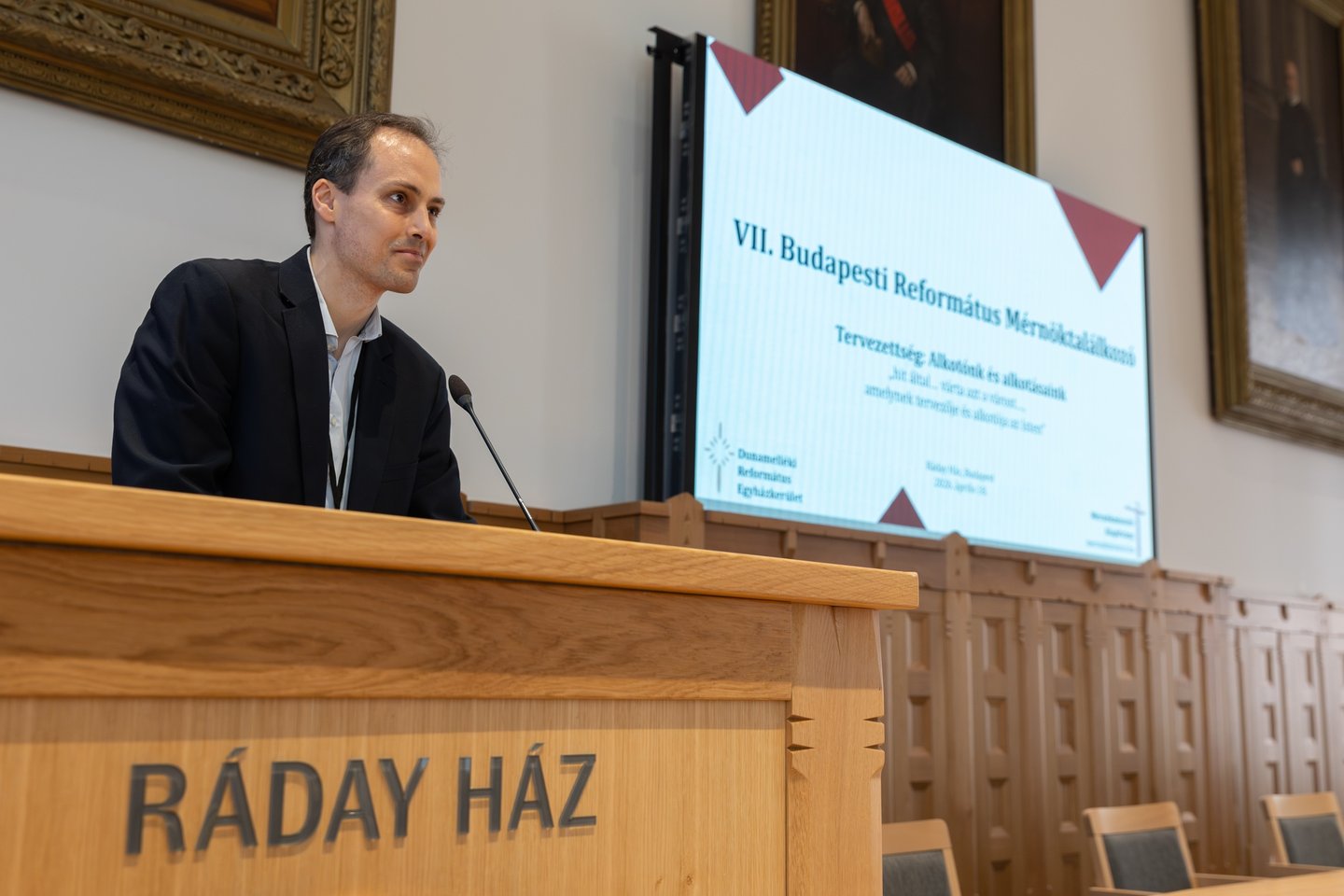 A Dunamelléki Református Egyházkerület képviseletében, a konferencia végéhez közeledve Veres Sándor főgondnok – nyugdíjas villamosmérnök – köszöntötte a Mérnöktalálkozó résztvevőit. Felidéze a református Bay Zoltán fizikus, a magyar csillagászat úttörőjének emlékét, akinek nevéhez fűződik többek között az 1946. február 6-i Hold-radar-kísérlet, illetve a fénysebességre alapozott méterdefiníció. Megemlítette Lovas Miklóst is, az éppen hét évvel ezelőtt elhunyt csillagászt, aki a svábhegyi gyülekezetnek volt újjáalapító presbitere. Zárszóként a Ráday Ház tervezettségéről mesélt: arról, hogy az épület világos és belátható tereivel hogyan kapcsolódik a környezetéhez, egyúttal egyértelműen hangsúlyozza a Krisztushoz tartozást.
