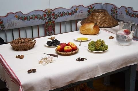 Karácsony első napján volt igazán bőséges az ünnepi asztal, amelyre gabonával teli kosár is került a jó termésért, a mák, dió, a bab a bőséget jelképezte, az alma az egységet és a szépséget. A gyümölcsöt a karácsonyi vacsora után a családfő annyi cikkelyre vágta, ahányan az asztalnál ültek, szokás volt egy almagerezdet szelni a távollévőknek is – ismertette Antal Emese.