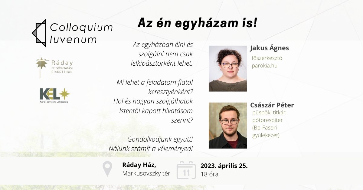 A Colloquium Iuvenum nevű rendezvénysorozat célja, hogy református fiatalok együtt gondolkodhassanak az egyházunkat és benne őket is érintő kérdésekről. Éppen ezért nemcsak teológus hallgatókat várnak ezekre az alkalmakra, de minden református egyetemistát, fiatal felnőttet, aki szívesen gondolkodna velük együtt.