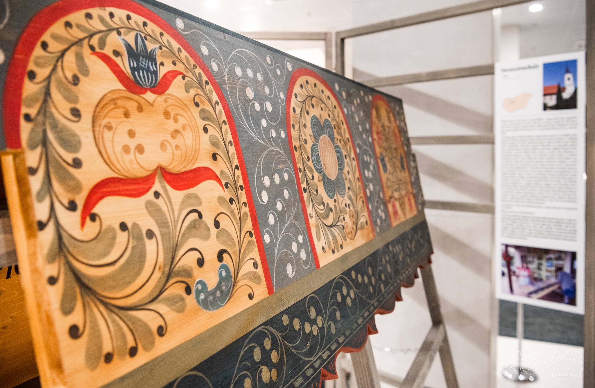 A népi iparművészet hagyományait ébren tartó kiállítás nyílt a budapesti Ráday Házban. Ament Éva bútorfestő szakoktató tanítványaival együtt lehelt életet a révkomáromi festő-asztalosok templomi munkáiba.