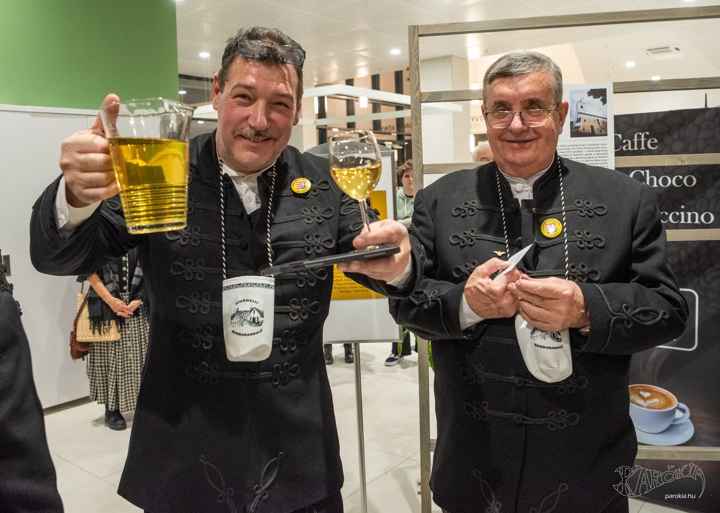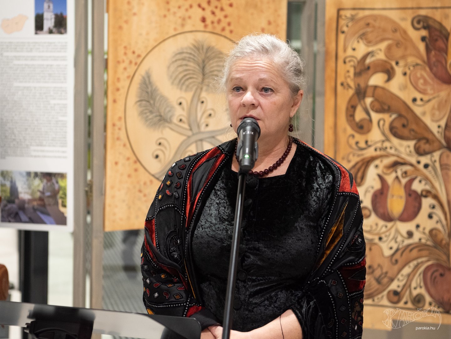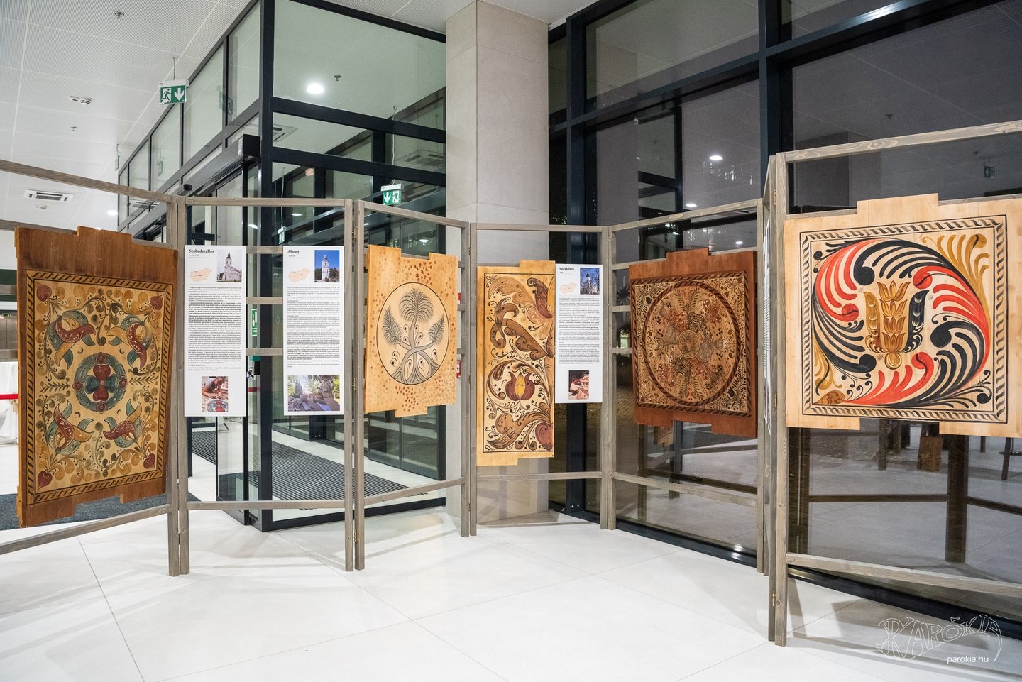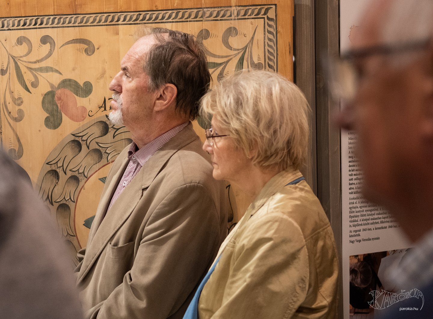 A megnyitó a Gyermelyi Férfi Dalárda énekes előadásával vette kezdetét. A harminc főből álló kórus nem először énekel Ament Éva kiállításmegnyitóján, a lelkes férfiak közt katolikus plébános és református lelkész egyaránt akad. Ahogy a fakazettás mennyezetek világa összeköti az anyaországiakat a határon túliakkal, úgy az erőteljes férfikórus dalaiban is Erdélytől a Felvidékig feltűnt minden táj, ahol értik a magyar szót.