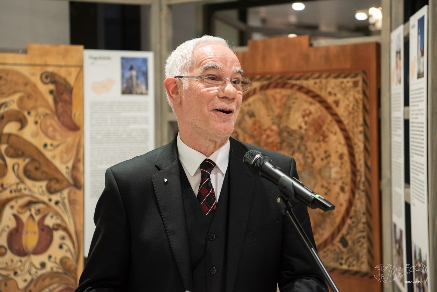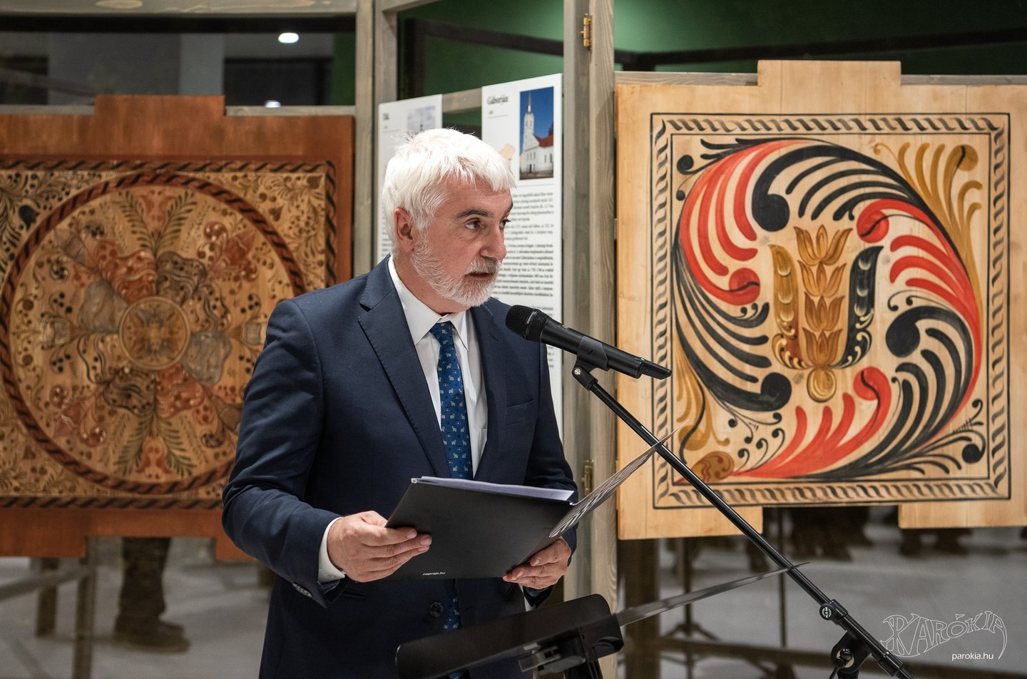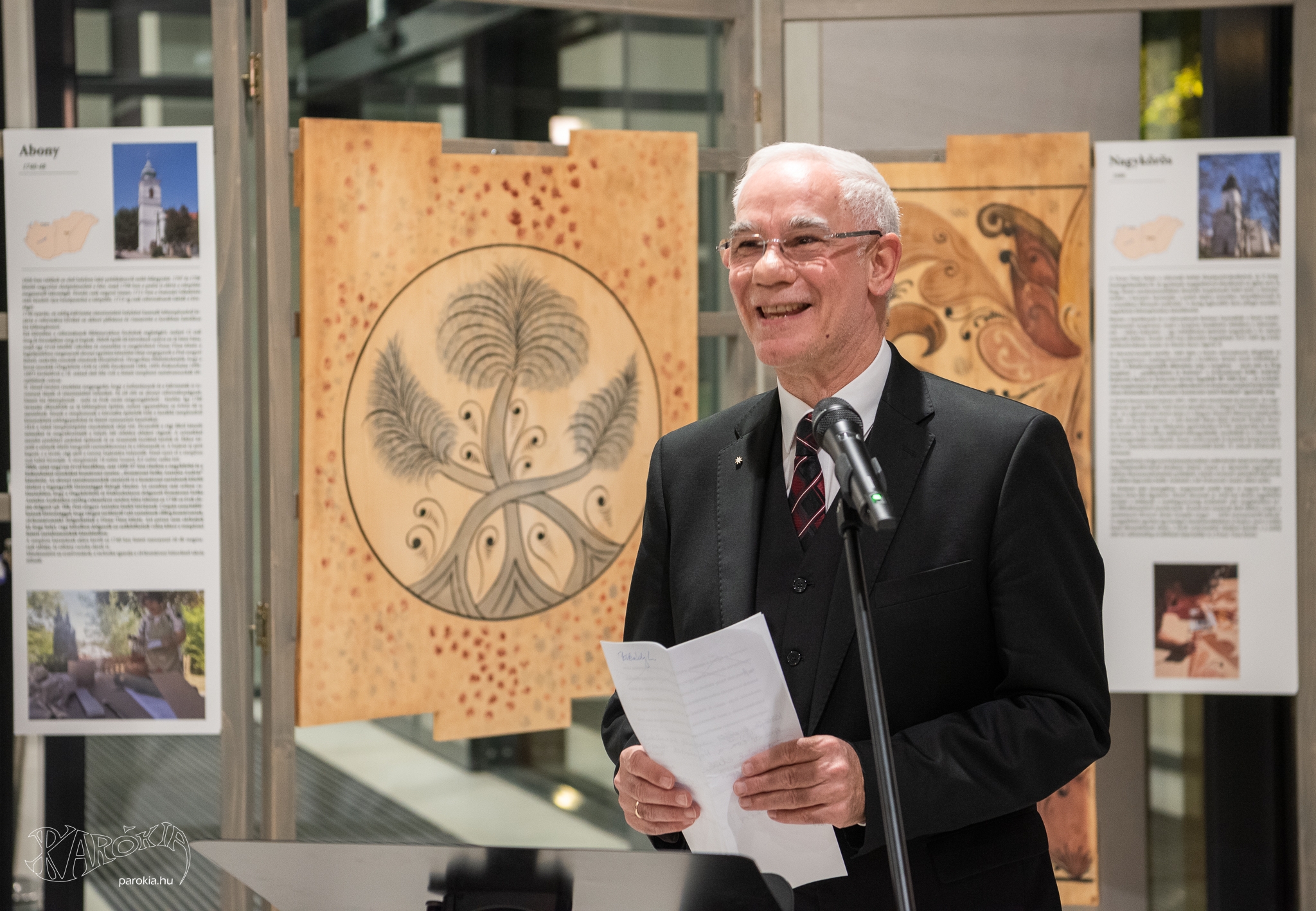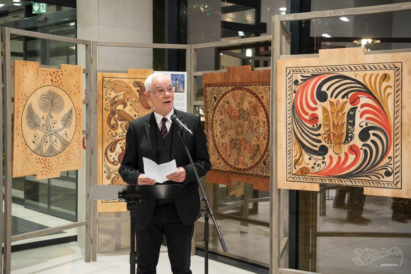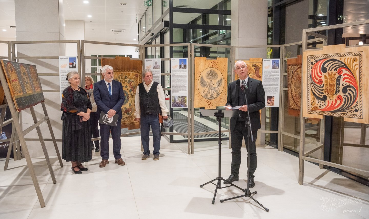 A megnyitó köszöntő beszédeinek sorát Kemecsi Lajos, a Néprajzi Múzeum főigazgatójának magas szakmaisággal és alázattal mondott beszéde zárta. Elmondta, hogy a festőasztalosok (elnevezésük 1942-ből származik és Voit Pál művészettörténésznek köszönhetjük) művészi gyakorlata a XIX. század folyamán szinte észrevétlenül olvadt bele a népművészetbe. Beszélt arról, hogy a kazettákon nemcsak a növényi ornamensek, hanem a református istentisztelet emblematikus tárgyai is megfigyelhetők. Beavatta a hallgatókat, hogy az alakos ábrázolások felekezetenként változó jelentéstartalmat hordoztak, megmutatkoztak köztük a címerábrázolások, az egyházi szimbólumok, az ó- és újszövetségi jelenetek, melyek mellett az állatábrázolások tűntek fel a legnagyobb számban. Kemecsi Lajos érintette többek közt a minták értelmezésének lehetőségeit is, amikor a XVIII. századi kazettafestés technikai részleteiről beszélt.