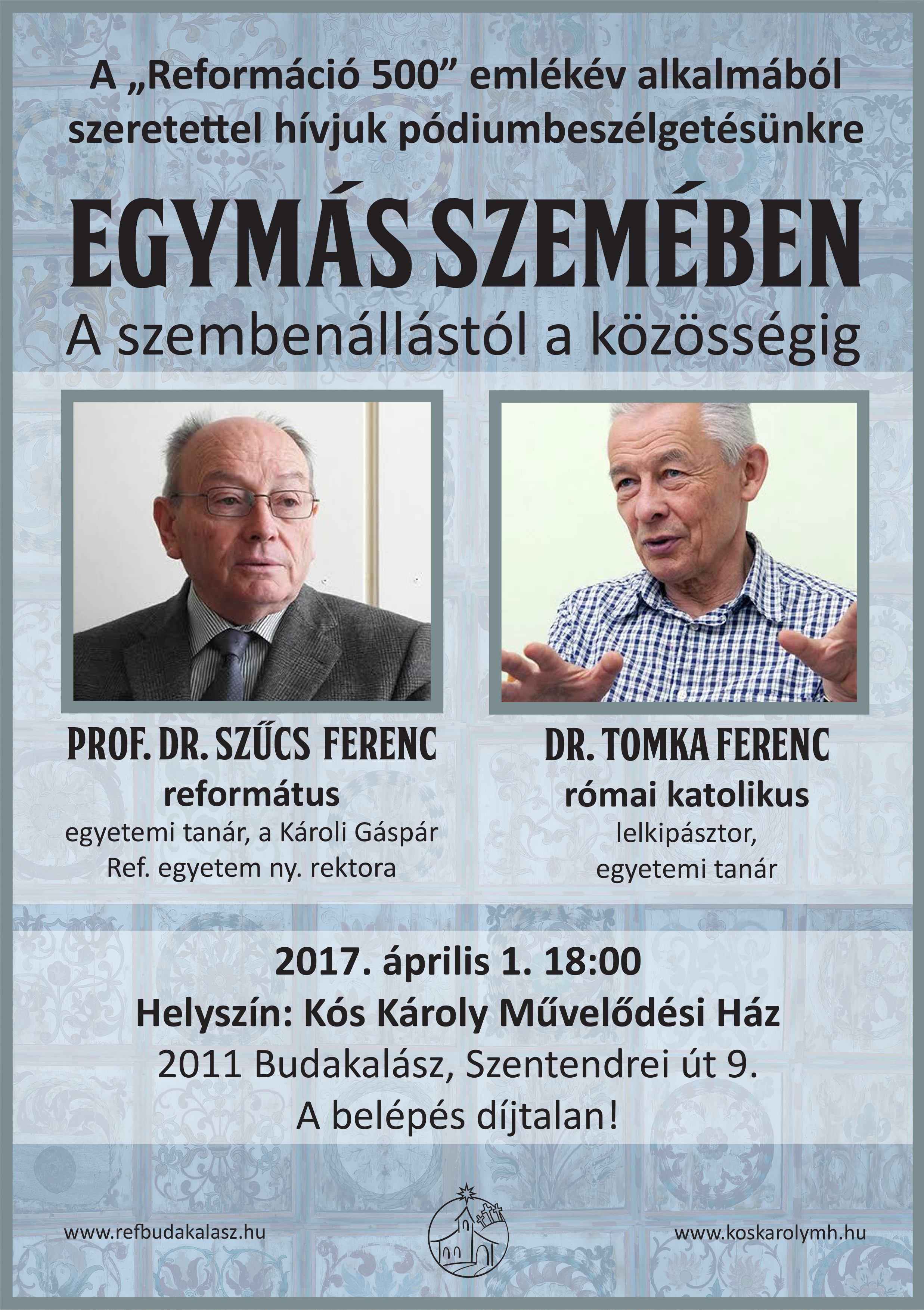 Testvéri beszélgetés egy katolikus és egy református teológiai tanár között dr. Tomka Ferenc (katolikus) és dr. Szűcs Ferenc (református) részvételével.