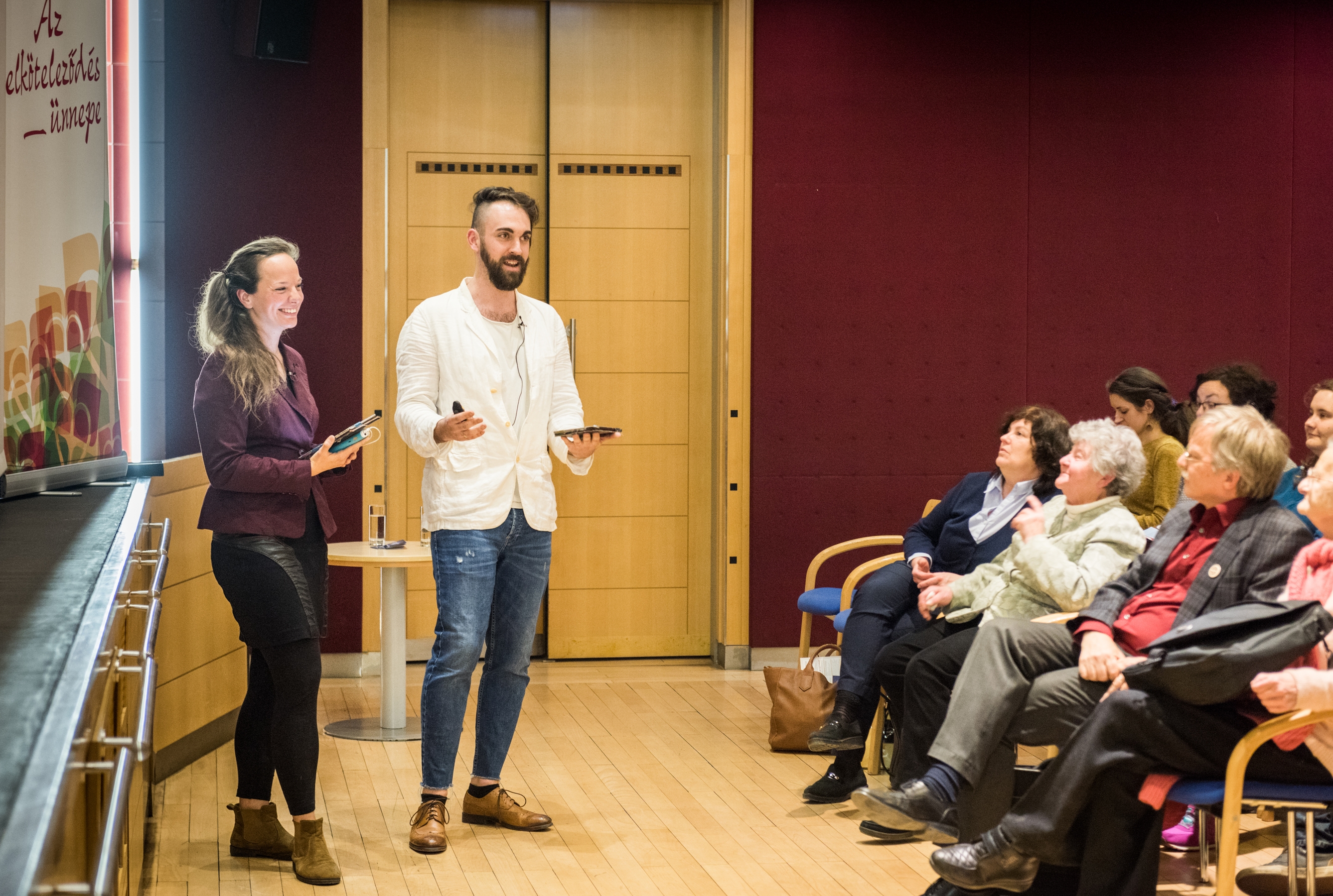 „Ha van olyan pár itt, aki hiányolná a kihívásokat, akkor javasoljuk, készüljenek fel együtt a róluk szóló előadásra” – adta meg az alaphangulatot Záborszky Dávid, előrevetítve, hogy minden komolyságával együtt a házasságból nélkülözhetetlen a humor. Az ifjú házaspár vállaltan teológiai és pszichológiai alapon, személyes példákkal illusztrálva beszélt arról, milyen utat jártak be megismerkedésüktől mostanáig. A különbségekben rejlő kiegészülés lehetőségéről vall már az is, hogy míg a feleség megközelítése merőben tudományosnak indult, a férj igyekezett emészthetőbbé tenni kettejük történetét. Záborszky Zsófia megerősítette: számukra is azok nyújtanak hiteles példát, akik mernek az életük kihívásairól is beszélni. Ez bátorító, szemben azokkal az idealizált képekkel, amelyeknek nem lehet megfelelni – fogalmazott.