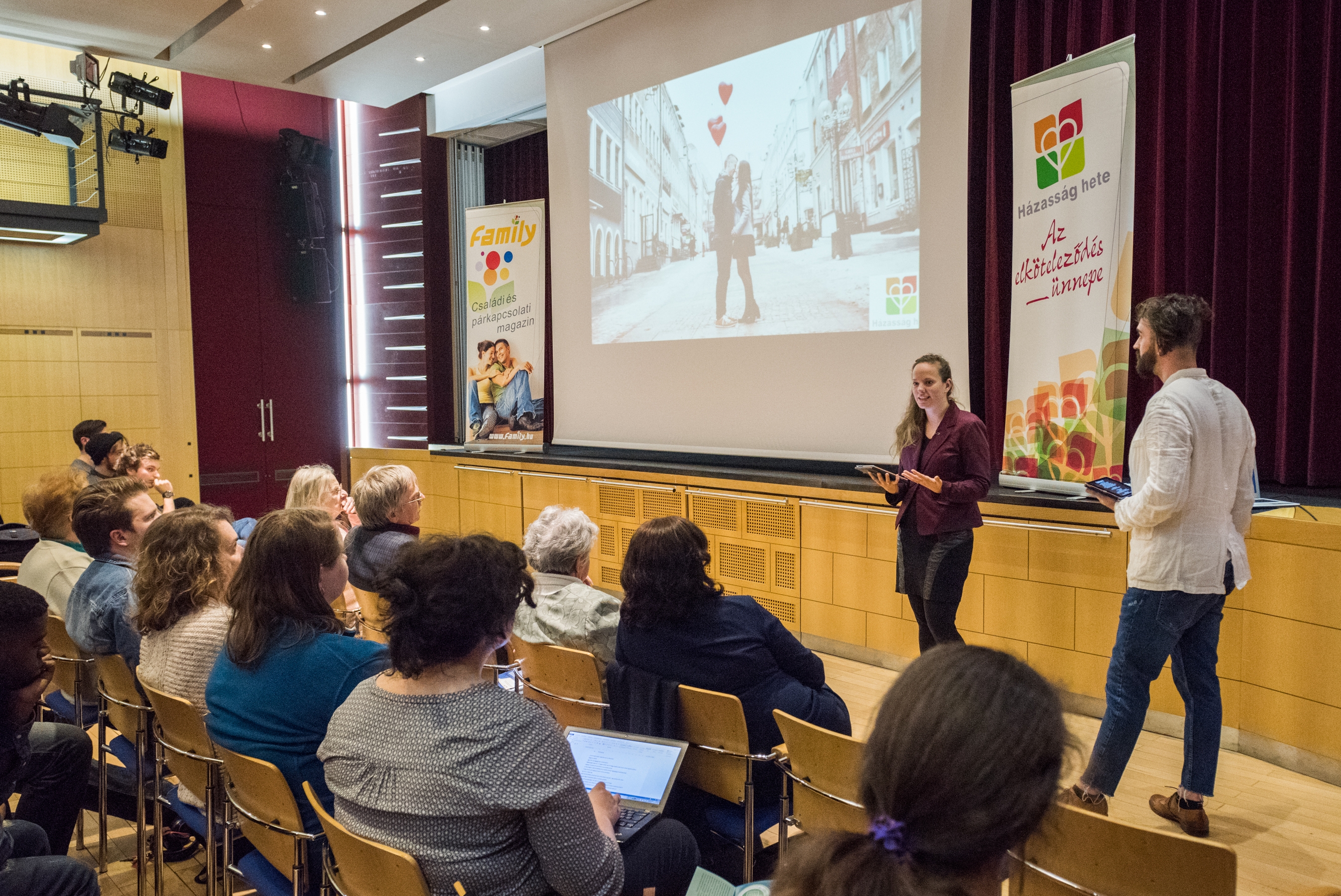 Fiatal és évtizedes tapasztalattal rendelkező házasok egyaránt megszólalnak az idei házasság hete programsorozatban. A hazánkban éppen tíz esztendeje meghonosodott mozgalom fókuszában idén az áll, hogyan tartható meg a házasság, mi kell ahhoz, hogy a szövetségre lépett férfi és nő élethosszig tartó kapcsolata töretlen maradjon. Záborszky Dávid és Zsófia egy fontos kapaszkodóról beszéltek Az öt szeretetnyelv a párkapcsolat kihívásai között című előadásukban, melyet népes hallgatóság kísért figyelemmel a hét nyitó előadásán a budapesti Aranytíz Kultúrházban.