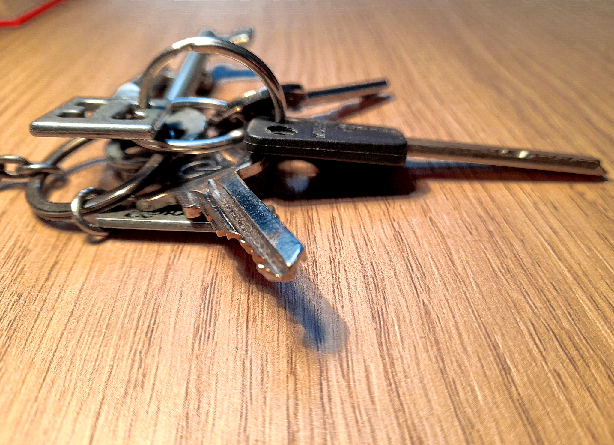 A kapuhoz érve benyúltam táskám zsebébe, hogy elővegyem a kulcsomat, amikor észrevettem, hogy nincs meg. Többször is végigtapogattam a zsebet, megnéztem a mellette lévőt is, hátha csak rossz helyre tettem vissza, de ott sem volt. Különböző forgatókönyvek futottak át az agyamon: kiesett volna útközben? Esetleg ellopták? Szórakozottságomban olyan helyre tettem, ahol eszembe se jutna keresni? Szisztematikusan kipakoltam a táskámból mindent, majd a kabátom és nadrágom zsebeit is alaposan átkutattam, de hiába. Megálltam egy pillanatra, hogy összeszedjem magam, és gondolkozzak. Beugrott, hogy a munkahelyemen még megvolt. Gyorsan megkérdeztem hát az ott dolgozó kollégáimat, hogy nem maradt-e bent a kulcsom. Hamarosan visszaírtak: ott van az íróasztalomon, hogyan tudnák eljuttatni hozzám? Nagy kő esett le a szívemről. Végül személyesen mentem be a kulcsért pár óra múlva. Akkor készítettem ezt a fotót.