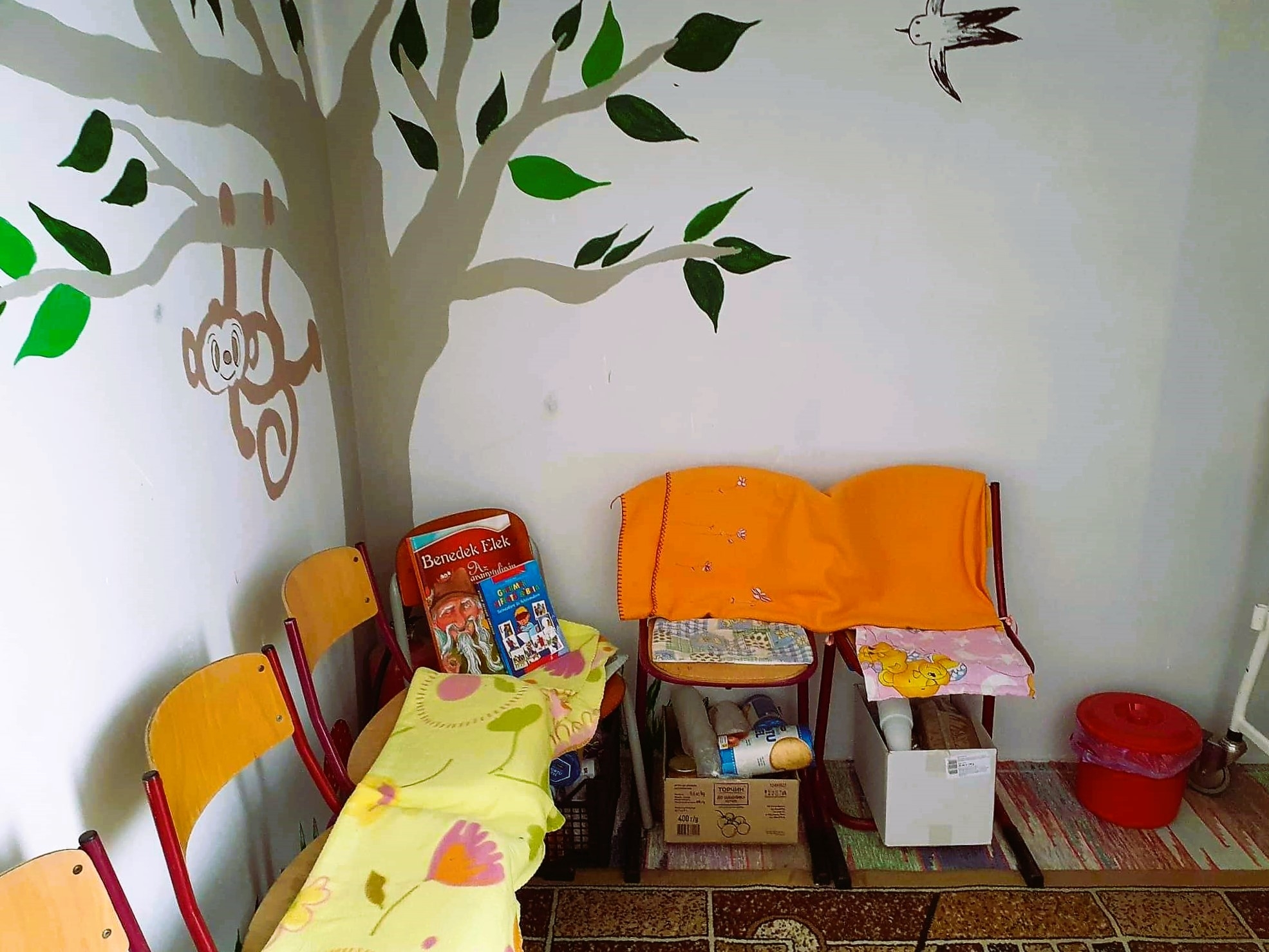 Hogy a környezet barátságos legyen, az óvoda munkatársai kimeszelték a falakat, és rajzoltak rá, például felhőket, fát és macit. Fontosnak tartják, hogy ne legyen ijesztő a hely, így a kötelező felszereléseken túl mesekönyveket és néhány játékot is vittek le. A padlót pedig szőnyegekkel, pokrócokkal borították, hogy kényelmesebb legyen a gyerekeknek. Az óvóhelyet önerőből ők sem tudták kialakítani. „Hálásak vagyunk minden segítségért, köszönjük a támogatásokat!” – mondja az óvoda vezetője.