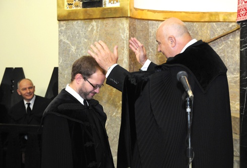 Simonfi Sándor esperes adta át Pataki András Dávidnak a Budapest-Fasori Református Egyházközség kulcsát és pecsétjét. – Nem azért, hogy Neked kelljen naponként kinyitni a hivatal ajtaját, hanem jelképesen, hogy még ha kézbe sem veszed, akkor is küldetésedre emlékeztessen: az Igén keresztül sok ember útját nyisd meg Isten felé Krisztus váltságáldozatán keresztül. A hivatali pecsét pedig emlékeztessen arra a küldetésedre is, hogy Te magad is pecsét légy. Élj úgy a gyülekezetben, hogy mindent, amit csak hirdetsz, az életed hitelesítse – hangzott az intelem.