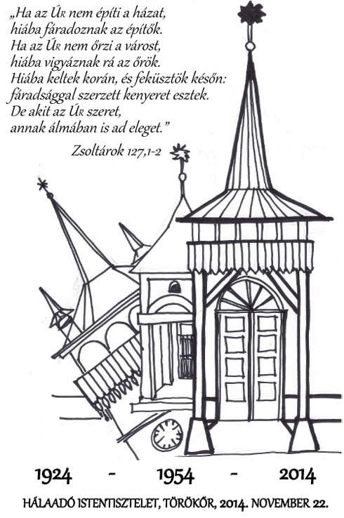 Ezért adtunk hálát november 22-én. Dr. Bölcskei Gusztáv zsinati lelkészi elnök igeszolgálata megerősített bennünket abban, hogy jól döntöttünk a nyomatékosabb jellé válás mellett. Simonfi Sándor esperes áldásával felavattuk a tornyot. Balássy András lelkész és dr. Nagy Sándor presbiter-főgondnok megköszönték az önkormányzatok és a hívek rendkívüli adományait, támogatásait. Az alkalmon a Gulyás-család kvartettje és a gyülekezet énekkara is szolgált. Örömünkben osztoztak a régi, de elszármazott törökőriek, a környező gyülekezetek képviselői is. Az ünnepséget megtisztelte jelenlétével Jákób János tábori püspök és Bajcsy Lajos plébános mellett az érintett önkormányzatok több rangos képviselője is. Ugyancsak jelen volt dr. Boross Gézáné családjával, továbbá Czanik Péter nyugalmazott lelkész és felesége. Szabó István püspököt – fontos elfoglaltsága miatt – nélkülözni kényszerültünk, így csak küldött jókívánságaival élhettünk. A gyülekezet a megjelent illusztris vendégeket, szolgálókat egy szép emlékplakettel ajándékozta meg, melynek tervét Rácz Katalin gyülekezeti munkásunk készítette el és Soós Tamás volt presbiterünk valósított meg fatáblákon lézertechnológiával.