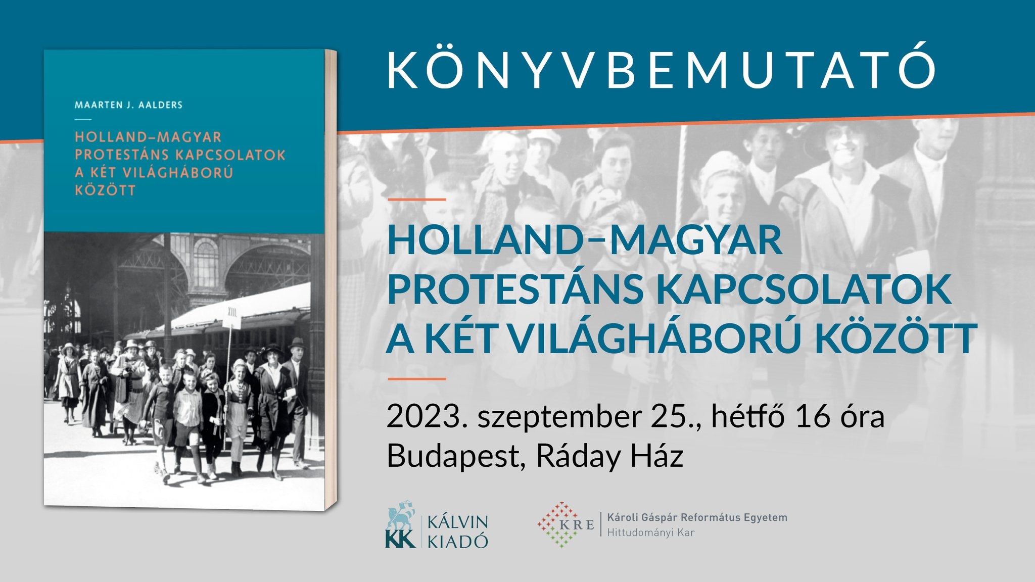 A Kálvin Kiadó és a Károli Gáspár Református Egyetem Hittudományi Karának Egyháztörténeti Tanszéke Holland–magyar protestáns kapcsolatok címmel könyvbemutatót tart szeptember 25-én, hétfőn 16 órától a Ráday Ház Tóth Kálmán termében.