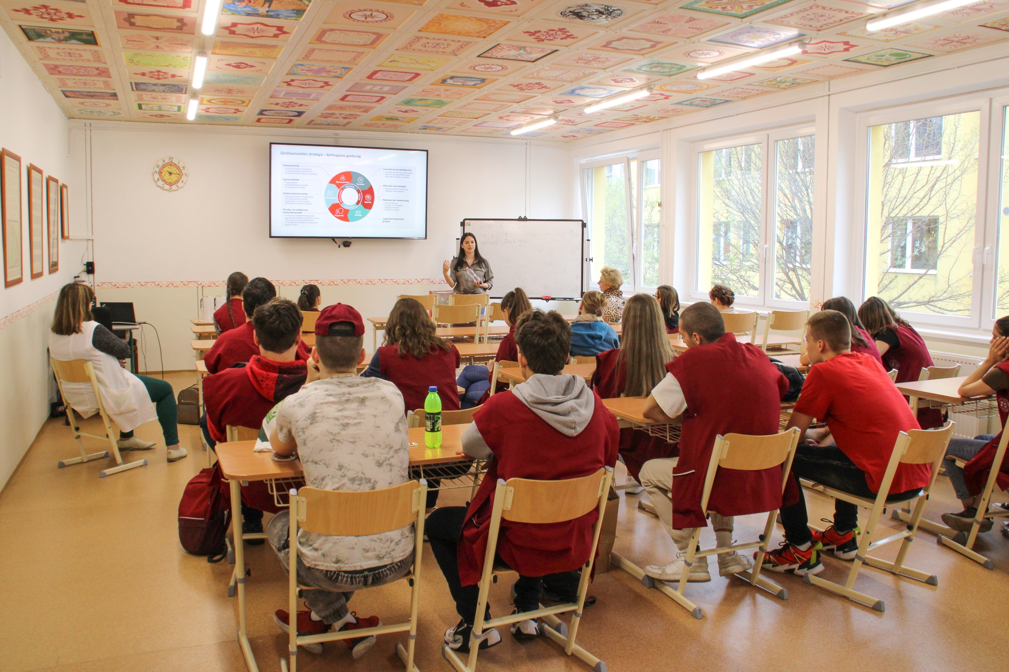 A 7. évfolyamosokhoz az BKM BUDAPEST KÖZMŰVEK Nonprofit Zrt. edukációs főmunkatársa látogatott el, és mesélt a budapesti hulladékbegyűjtés és újrahasznosítás történetéről és a jelenleg érvényes szabályokról. Természetesen a játék itt sem maradt el!