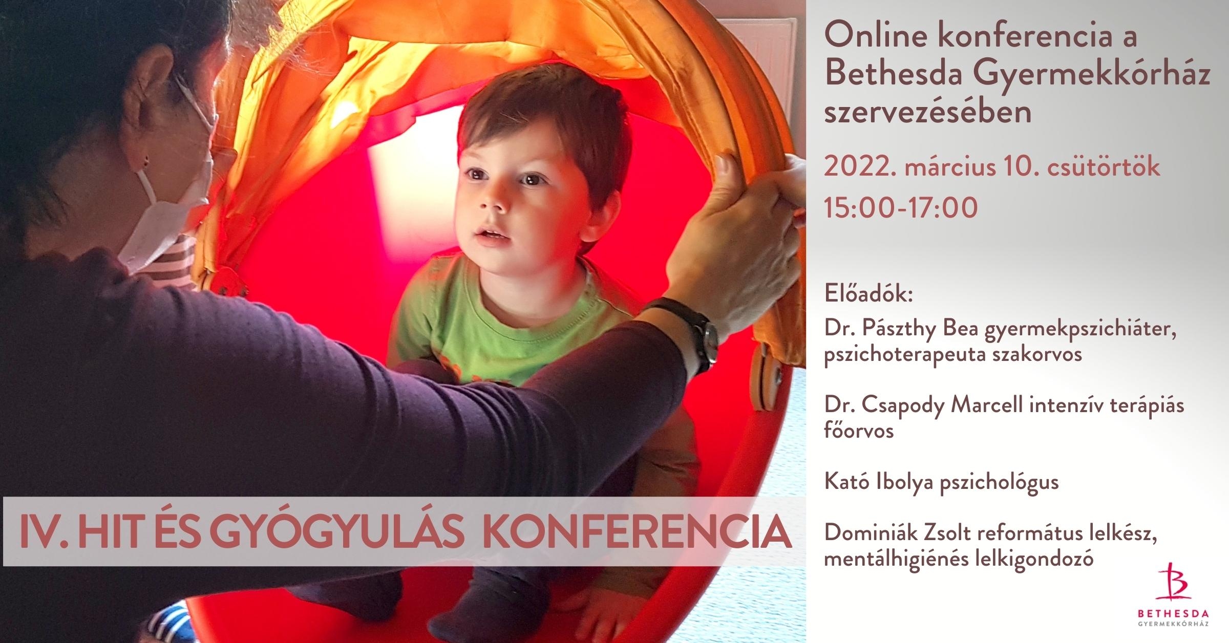 A szervezők szeretettel hívnak minden érdeklődőt IV. Hit és gyógyulás konferenciára, amelyet élőben közvetítenek a Bethesda Gyermekkórházból 2022. március 10-én csütörtökön 15 és 17 óra között.