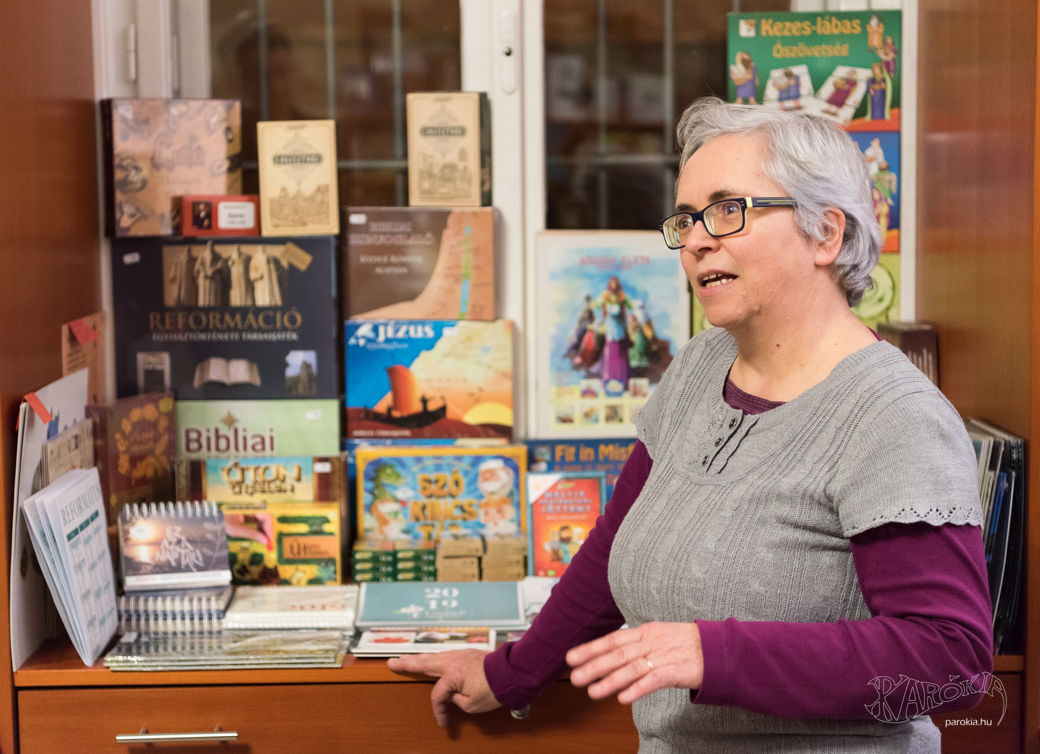 A Bibliás Könyesboltban a könyv a fő árucikk, de azért van igény játékokra is. „Az érdeklődők sokfélék. Van, aki hallott egy játékról, és meg akarja venni, de akad olykor, hogy egy hitoktató szeretné színesebbé tenni a munkáját valamelyikkel” – osztotta meg velünk tapasztalatait Miklóssy Hajnalka boltvezető. „Az újdonságoknak általában örülnek, kézbe veszik, átolvassák, tanulmányozzák. Ha valami nincs lefóliázva, azt ki is nyithatják. Van olyan, hogy én bontok ki valamit, mert a dobozon kevés az információ. Életkortól is függ, hogy mi a népszerű. A Kezes-lábas és a memóriakártyák például a legkisebbek kedvencei, az Úton, útfélen a nagyobbaké.”