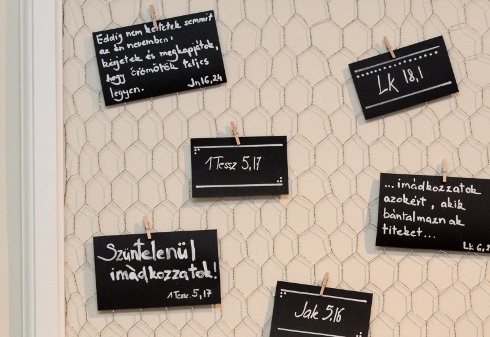 „Felújítottuk a szobát, levertük a régi vakolatot, megálmodtuk a berendezést, sok mindent saját kezűleg barkácsoltunk" - számolt be Budai Kisanna, aki a berendezésért felelt. „Ez a szoba alkalmas arra is, hogy két-három fiatal elvonulva a város zajától egy időben is bejöhessen anélkül, hogy egymást zavarnák. Talán nincs olyan messze, hogy az eredeti cél is megvalósuljon, és ezen a hely olyan imaszoba lehet, ami a hét minden napján éjjel-nappal nyitva áll."