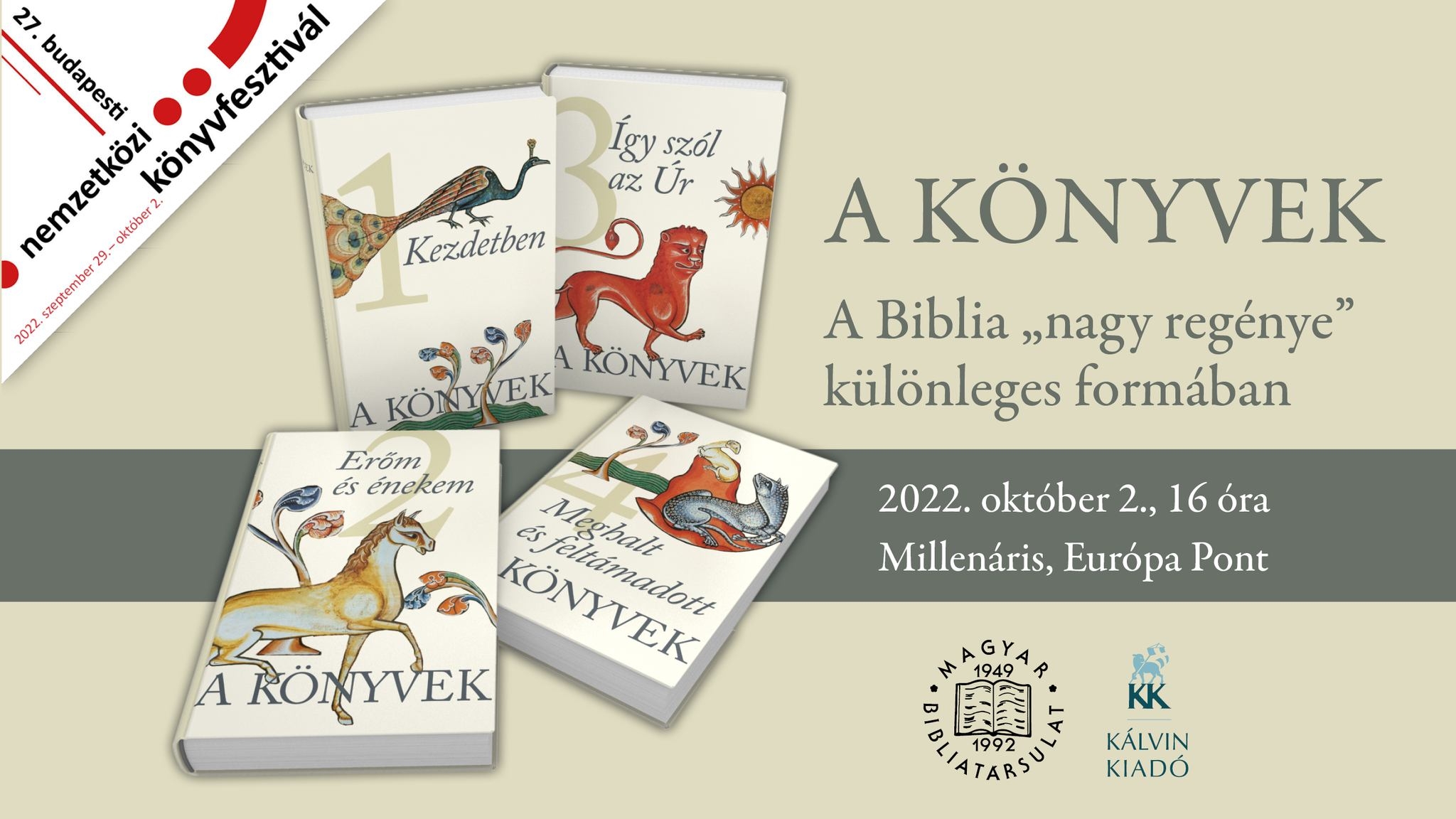 Idén újra a Millenáris ad helyszínt a 27. Budapesti Nemzetközi Könyvfesztiválnak. A Magyar Bibliatársulat és a Kálvin Kiadó kiállítói standján (D19) ezúttal is protestáns Bibliák és más keresztyén könyvek gazdag választékával, valamint könyvbemutatókkal és dedikálásokkal várja az érdeklődőket az eseményre.