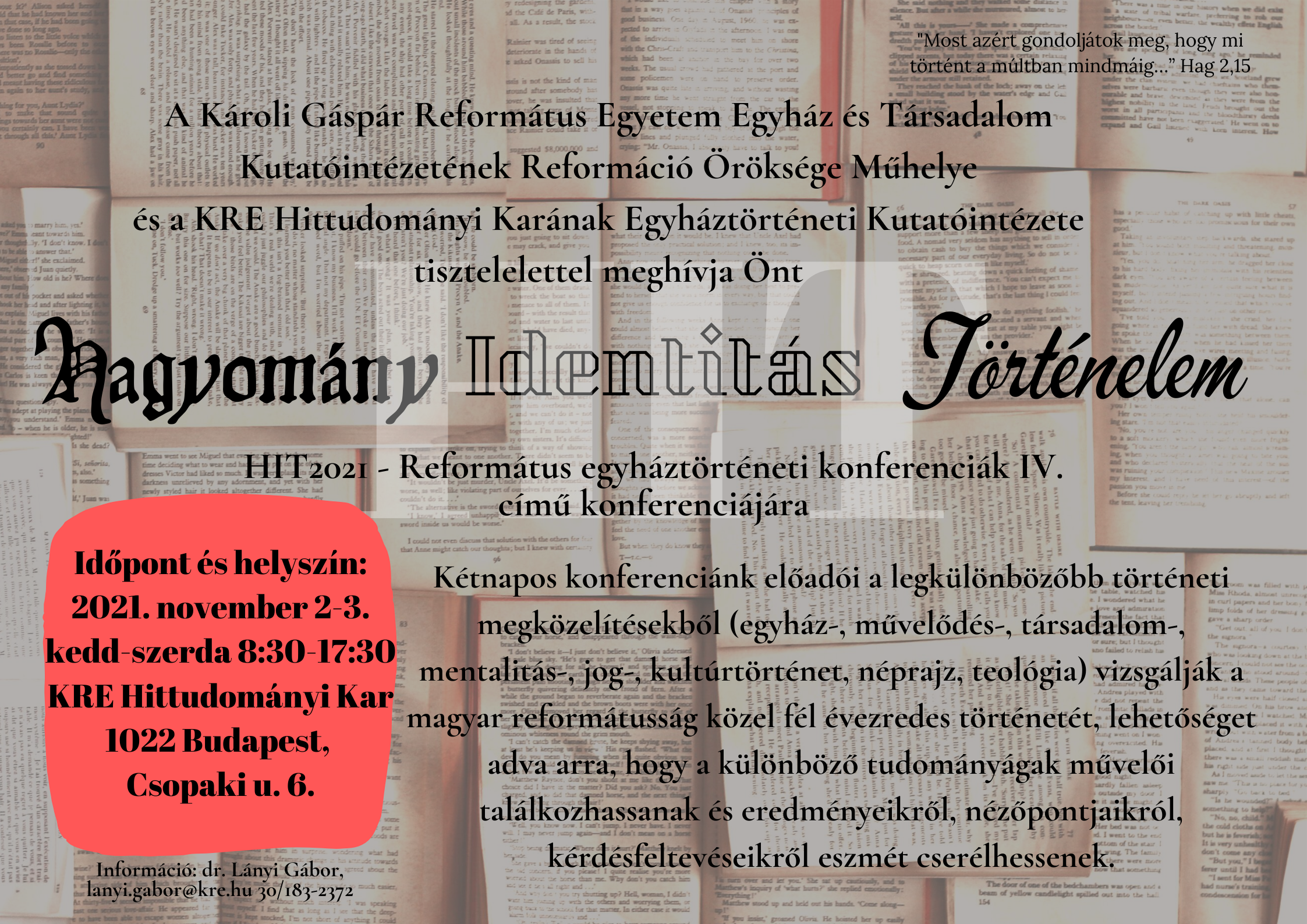 IV. Hagyomány, Identitás, Történelem (HIT) konferencia (november 2-3. kedd-szerda)