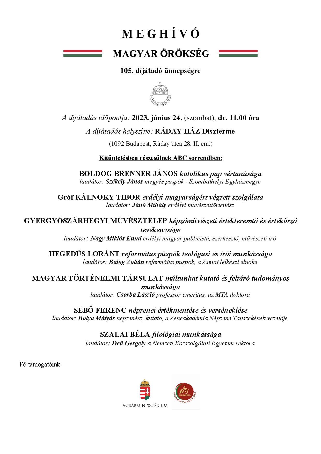 Magyar Örökség 105. díjátadó ünnepség 0 hozzászólás Időpont: 2023. június 24. 11:00 Helyszín: Ráday Ház díszterme, 1092 Budapest, Ráday utca 28. Programok