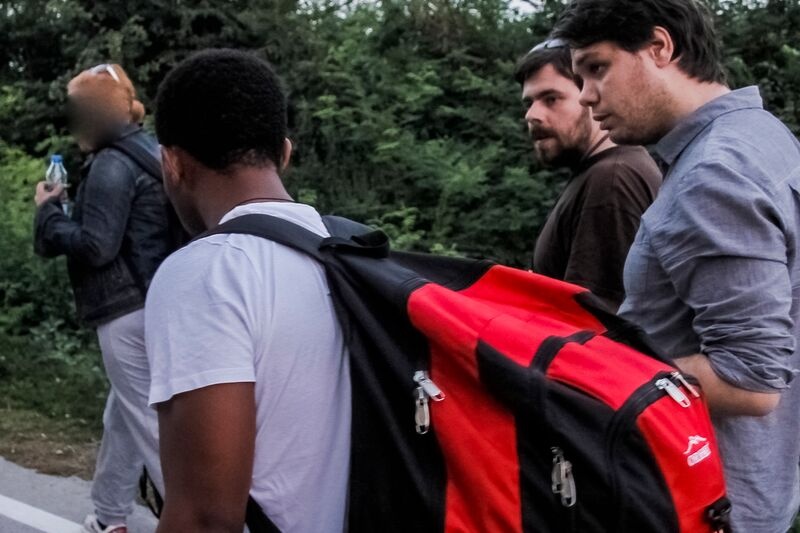 Erről a gyűjtőpontról a menekültek az elmúlt napokban többször kitörtek, és gyalog indultak el Budapest felé. Az egyik ilyen alkalommal az M5-ös autópályán sétáltak szemben a forgalommal. Ekkor beszélgettem egy iraki férfival, aki azt mondta, emberséget keres, ezért igyekszik Budapestre, majd Németországba. „Angela Merkel jót tesz velünk, ezért megyünk Németországba, ahol tanulni és dolgozni akarok, valamint biztonságban tudni a gyermekeimet és a családomat, ez minden, amit akarok." Nem vagy fáradt? – kérdezem. „Nem, nem vagyok fáradt, mert a szabadságot keresem" - mondja határozottan a férfi. Az autópályán menetelőket végül tizenöt kilométer után megállította a rendőrség, és buszokkal szállították vissza őket Röszkére, a regisztrációs pontra.