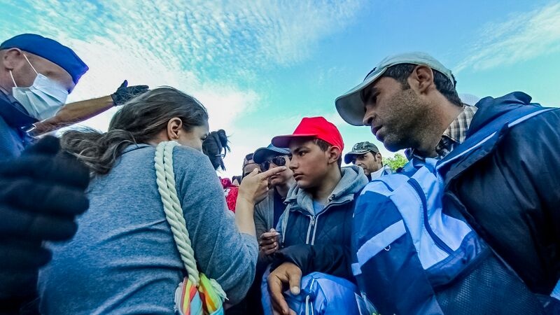 A kanizsai táborból buszokkal szállítják a menekülteket Horgosra, ahol a vasúti sínnél teszik ki őket. Innen gyalog jutnak el a szerb–magyar zöldhatárig. Egy buszról épp leszálló nő nyakában keresztet, férje nyakában pedig egy ichtüsz-halat pillantottunk meg. Amikor mondom a férfinek, hogy újságírók vagyunk és keresztyén menekülteket keresünk, hárítani próbál. Nem érünk rá, mutat a határ felé. Meggyőzöm, hogy egy darabon elkísérem őket, és közben beszélgessünk. Ő belemegy, a felesége azonban előrébb furakodik. Azt kérik, fényképeket ne készítsünk róluk.