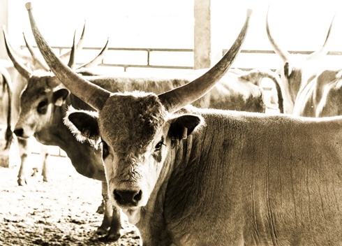 Szürkemarhák a Hídi majorban, készülődés a tenyészbikavásárra