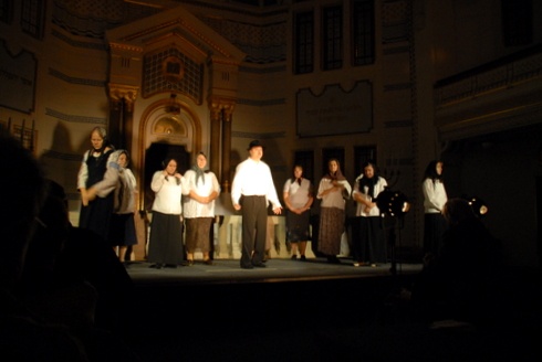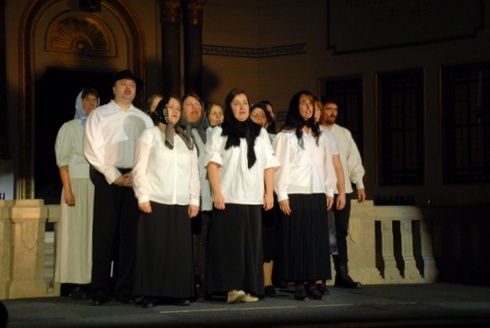 „Mink csak a napnyugtát níztük, hogy arra lakunk" – mondta az egyik fejkendős asszony. Nemcsak a színpadon, az életben is idősre való kendőt viselt, mire elkezdett beszélni arról, min mentek keresztül a málenkij robotra elhurcolt tiszaladányi fiatalok. Debreczeni Tibor Tiszaladányi jeremiád című darabját a Holokauszt Emlékközpontban adták elő a nagykőrösi református tanítóképző egykori növendékei.