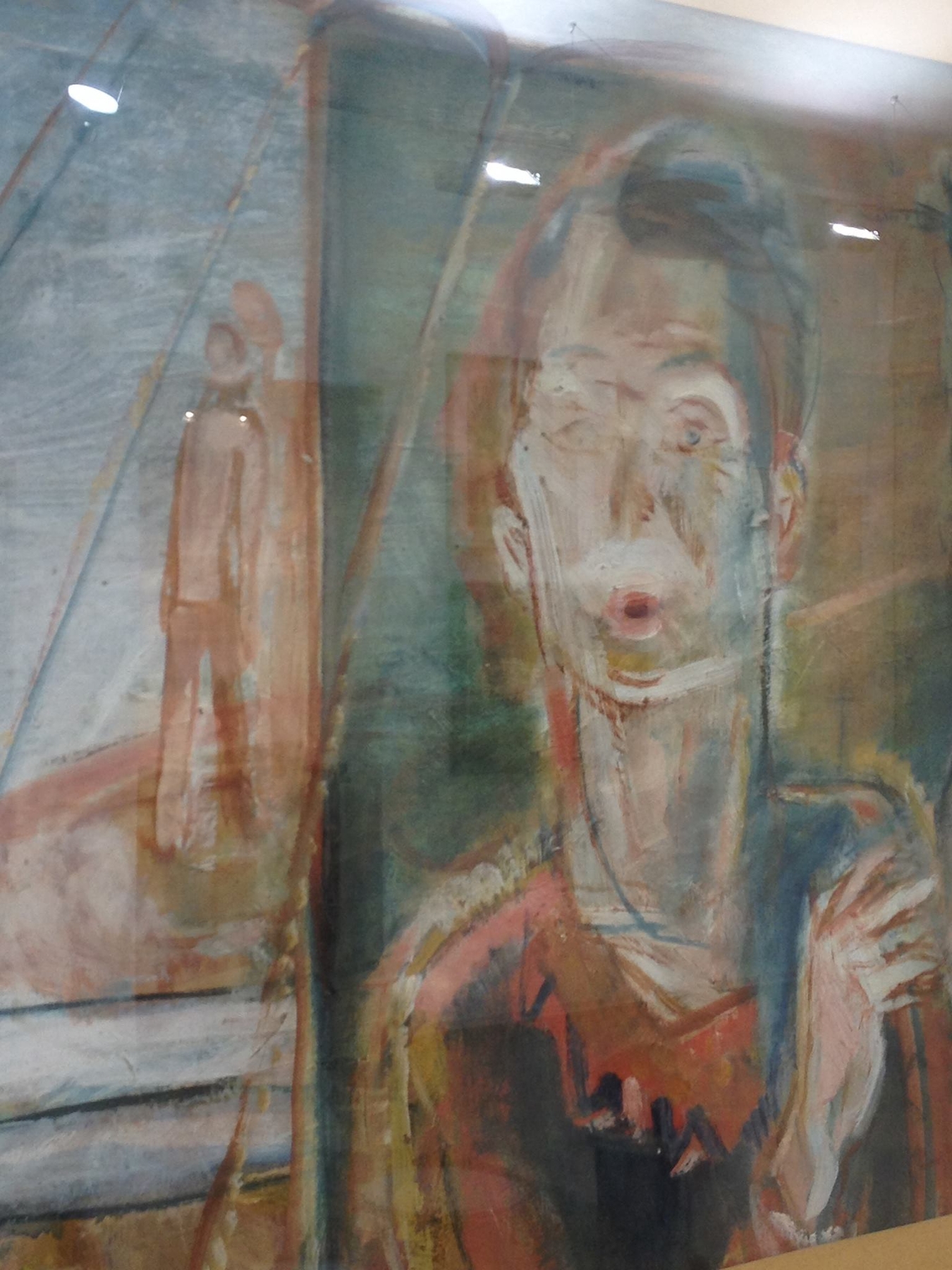 Az első szembetűnő dolog a kompozíciót illetően a kép közepén végigfutó függőleges, vastag elválasztó vonal, amely majdnem pontosan a művészi alkotás közepén van. Mintha két képet látnánk. Ha képzeletben letakarjuk akár a jobb, akár a bal oldalt, mindkettő önálló alkotásként is megállná a helyét, de az üzenetük merőben eltérő lenne. Egyvalami mégis összeköti a két részt, szinte szó szerint húzza a tekintetet. Nem is igazán az alkotás bal oldala, sokkal inkább valami külső origó felé – mely, ha jobban belegondolunk, maga a néző. Ez pedig az a három vonal, amely a cirkuszi sátrak vastag kötelére emlékeztet, és az a korlát, amely a porondon szereplőket a nézőktől választja el. A kötelet mintha mi húznánk, akik a képet csak múzeumi környezetben szemléljük. Ettől válunk túlzás nélkül a kép részeseivé.