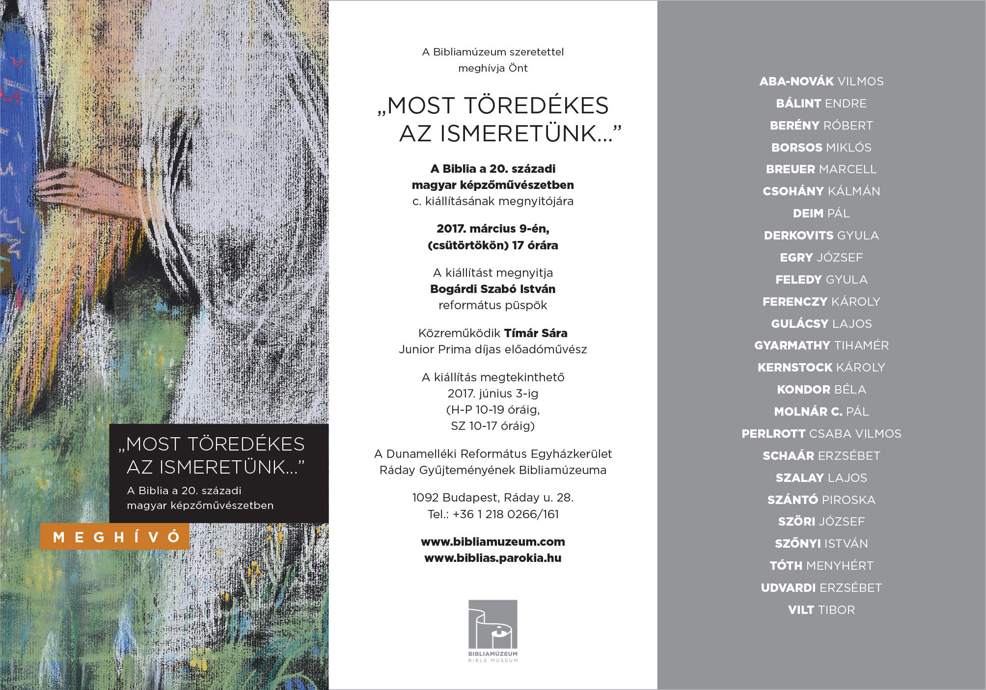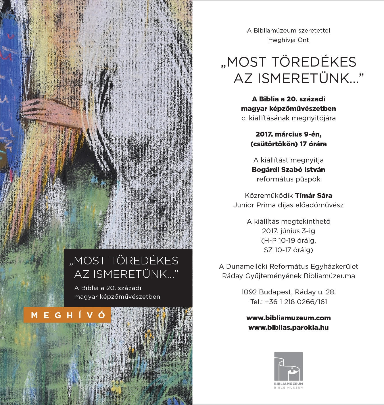 A Bibliamúzeum szeretettel meghívja az érdeklődöket 2017. március 9-én 17:00-kor a múzeum következő időszaki kiállításának megnyitójára.