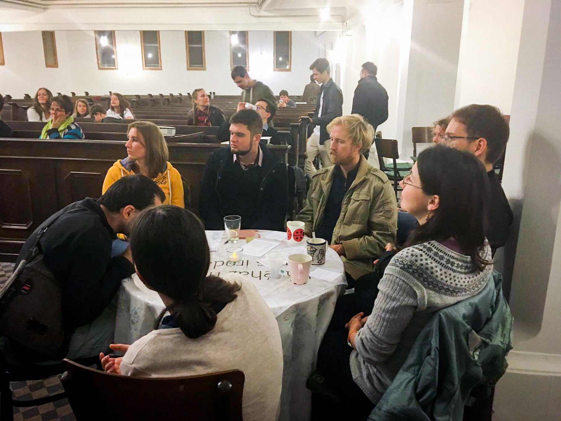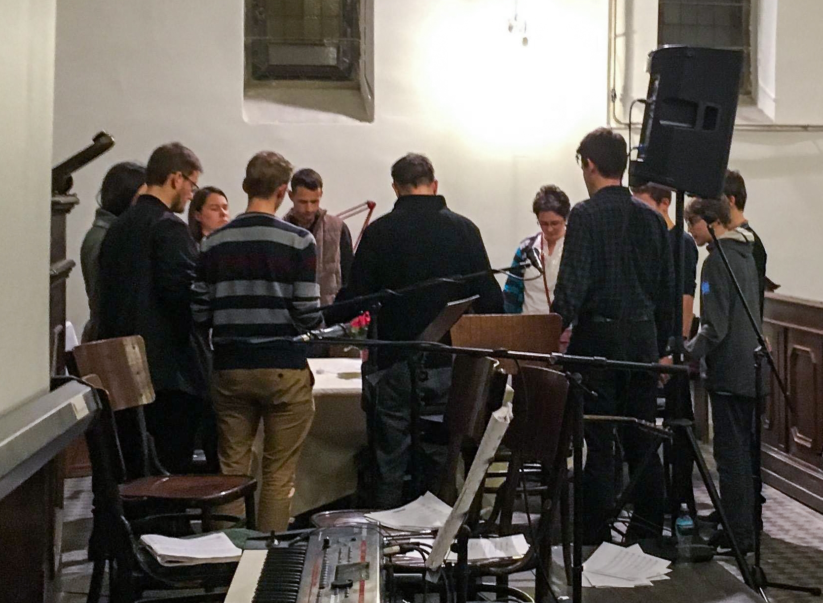 Az október 27-i imaéjjelre Budapest minden részéből érkeztek ide. Sőt, az agglomerációban működő gyülekezetekből is. Kis túlzással mindenki ismer mindenkit, mert ugyanabba a gyülekezetbe vagy egyetemi imaközösségbe jár, esetleg együtt konfirmáltak. Egymás után jönnek a mikrofonhoz, ki-ki elmondja az imádságát. Van, aki a különleges alkalomért ad hálát. Más azért, hogy társak lehetnek az imádkozásban. Jó hallani, ahogy egyszerű szavakkal, természetes módon szólítják meg Istent.