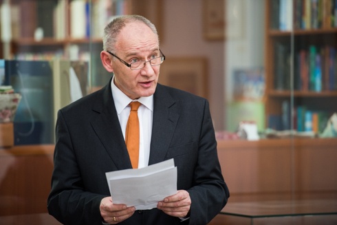 „Az egyik oldalon - ez Ország Lilié, némileg átívelve a másik oldalra - döntő mód labirintusokat látunk (s persze falakat, utakat, kapukat, létmozdulatokat)” - szólt a képekről megnyitó beszédében a püspök.