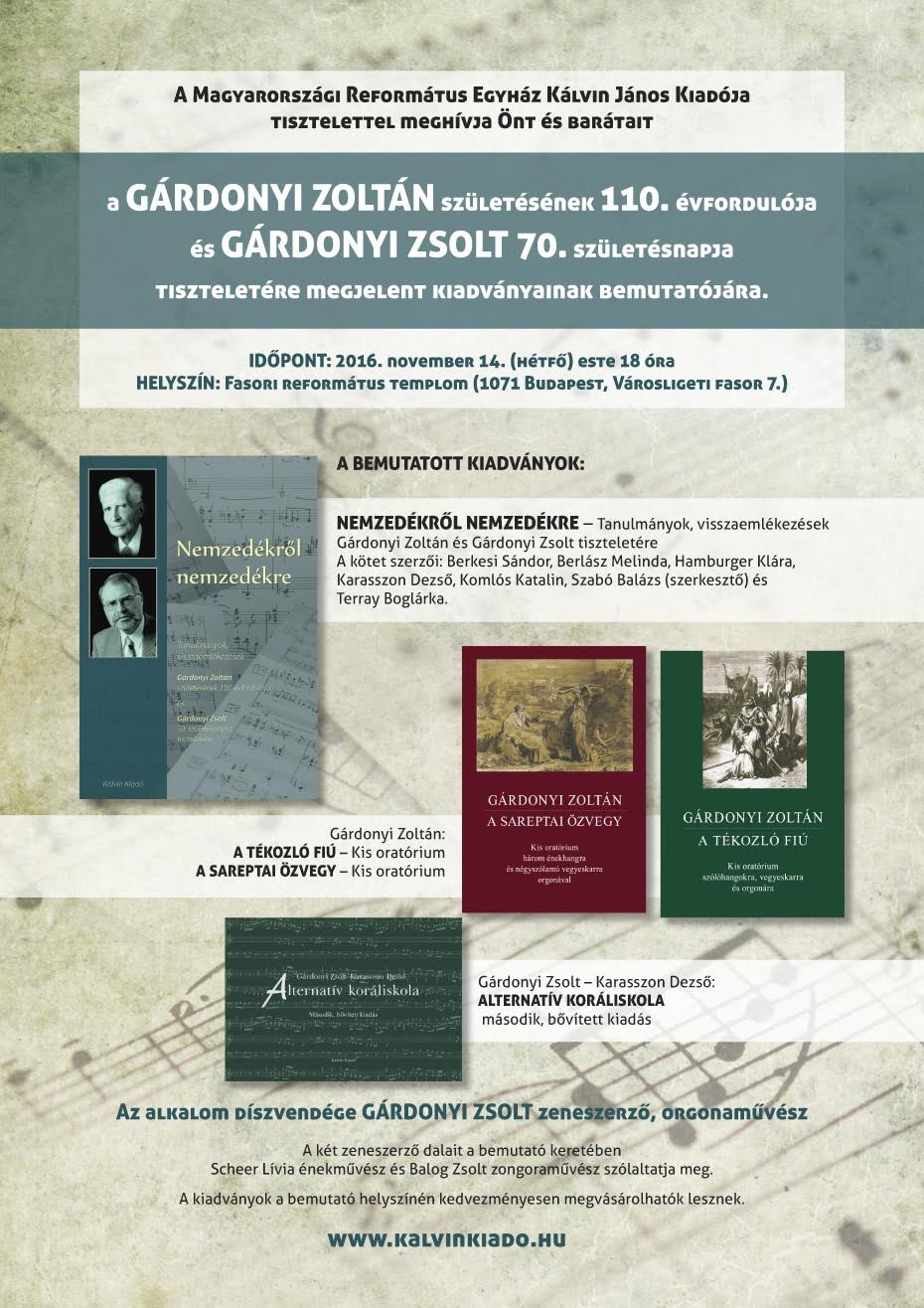 „Nemzedékről nemzedékre" – Gárdonyi-kötetek ünnepi bemutatója 0 hozzászólás Időpont: 2016. november 14. Helyszín: Fasori református templom Programok