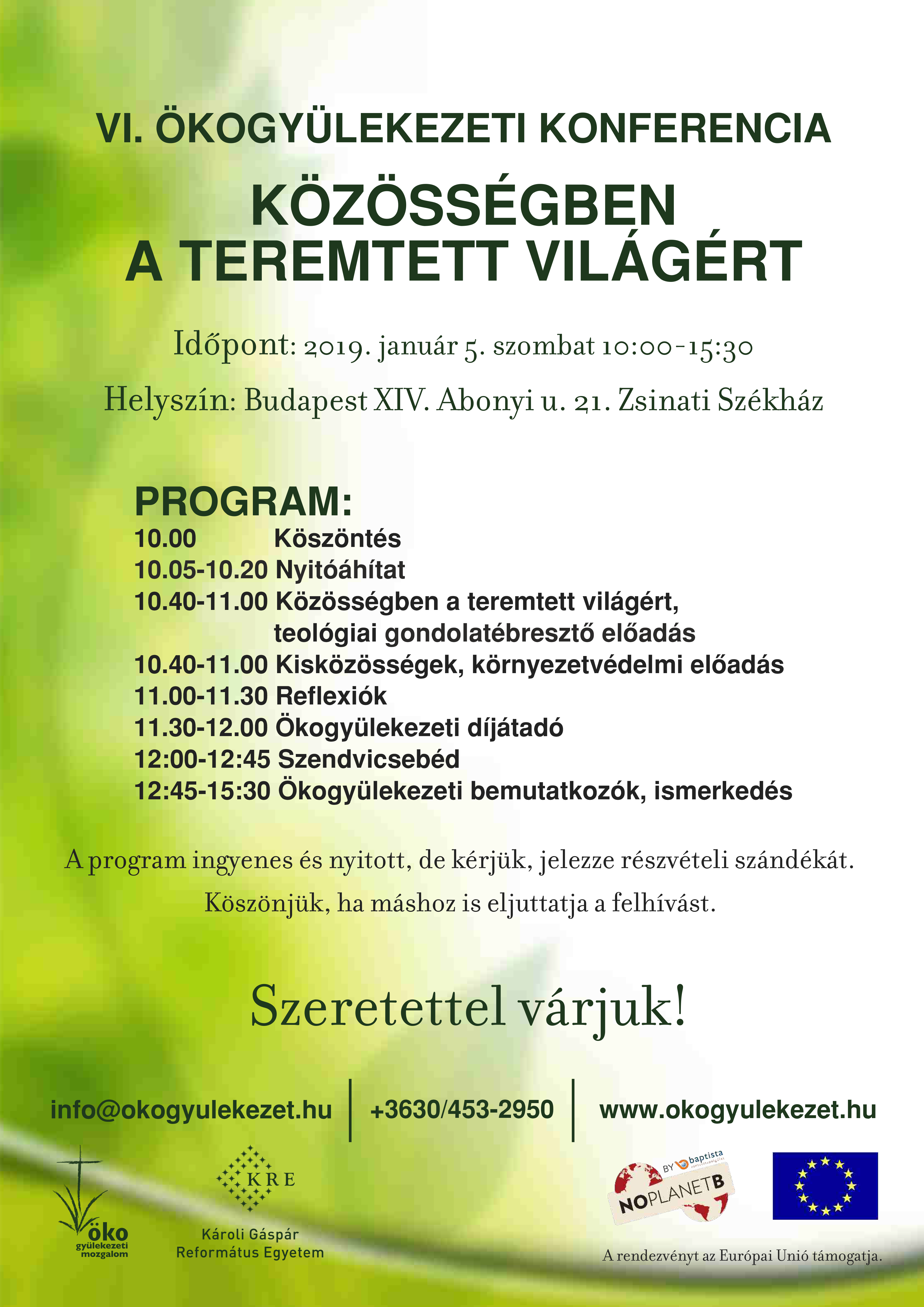 További információk: info@okogyulekezet.hu
