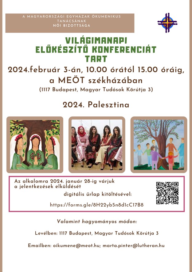 Gyülekezeteinknek, nőszövetségi munkatársainknak nem lesz könnyű dolga az idei világimanap szervezésében. Ugyanakkor érezzük, hogy éppen ebben a kiélezett politikai helyzetben szükséges felerősítenünk a Palesztinában élő keresztény testvérek hangját, akik – az apostoli intést magukévá téve - a feltétel nélküli szeretetre buzdítanak.