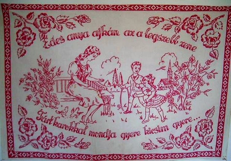 „Édesanya ajkán az a legszebb zene, tárt karokkal mondja: gyere, kicsim, gyere…” Minden alkalommal kibetűztem a falvédőre varrt mondatot a mosdó fölött a nagymamám házában. Mintha csak az ő karja tárult volna ki felénk, gyerekek felé. Ilyen padon üldögélt, amikor hallgatta a sparheltben pattogó tüzet. Volt egy másik pad is a rózsalugas alatt, ahová levelibékát hozatott, annyira szerette hallgatni az éneküket. A papával is üldögéltek a gangon, arra a padra párnát is tettek, a Mama tálat vett az ölébe, úgy fejtette a babot. Amikor eljött a nyár, a ház elé ültek ki, egy kissé csálé padra, ami mellett gyerekként annyit játszottunk színfogósat: fekete, fehér, zöld, sárga... Egy alkalommal éppen arra járt Eszti néni, ő az utca végén lakott egy kis házikóban. A nagyszüleim kedvesen érdeklődtek, beszélgettek vele. Csak mostanában tudatosult bennem, Eszti néni mennyire magányos lehetett. Rózsák virítottak ott is. Amikor a nagyszüleimre nézett és ránk, azt a képet láthatta, amit én a falvédőn.