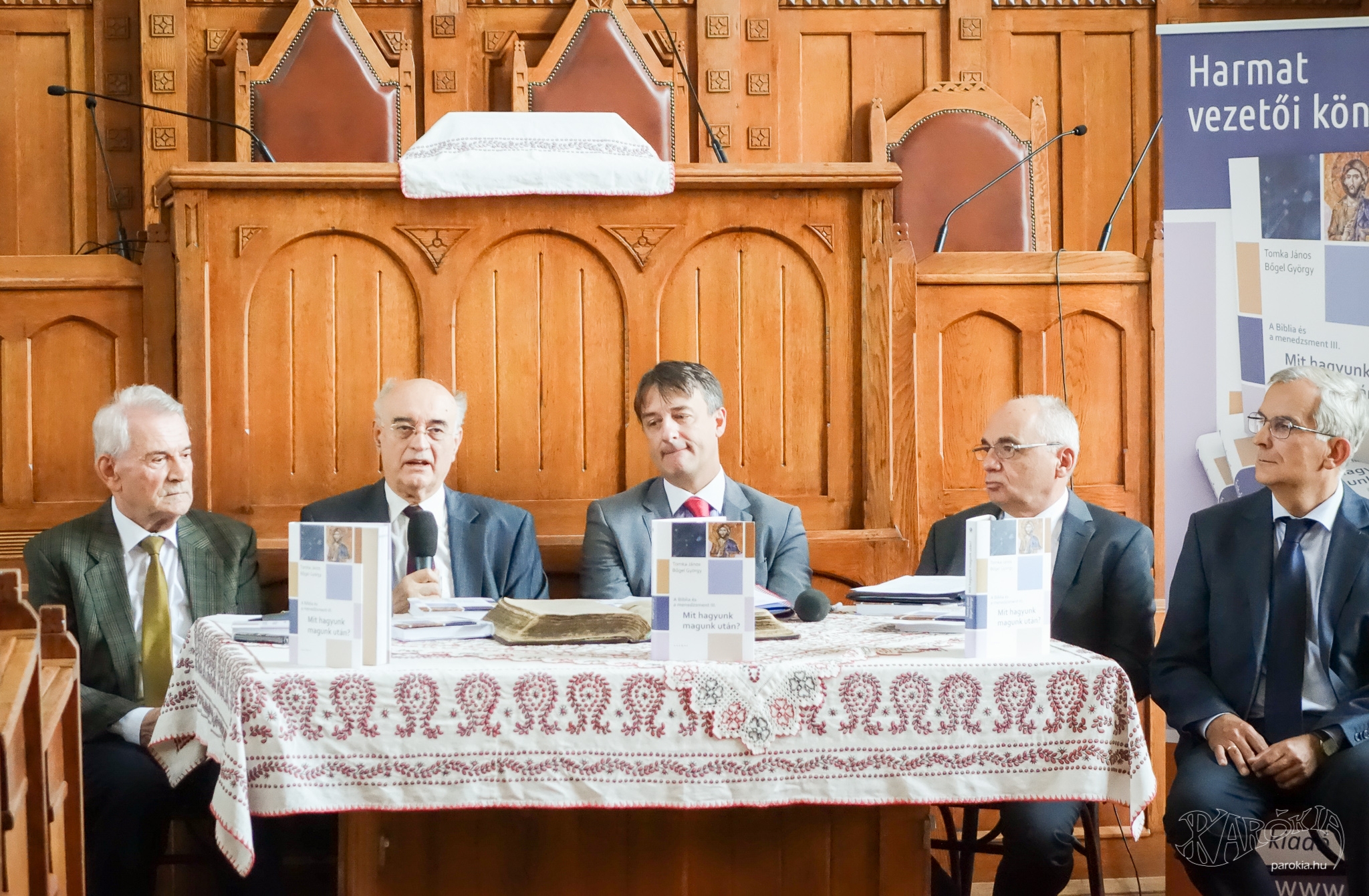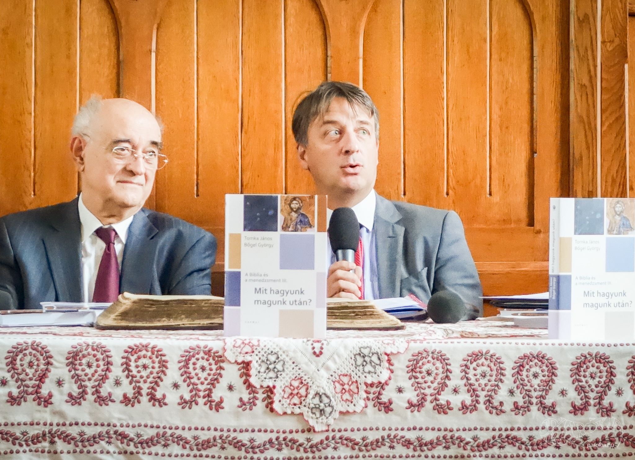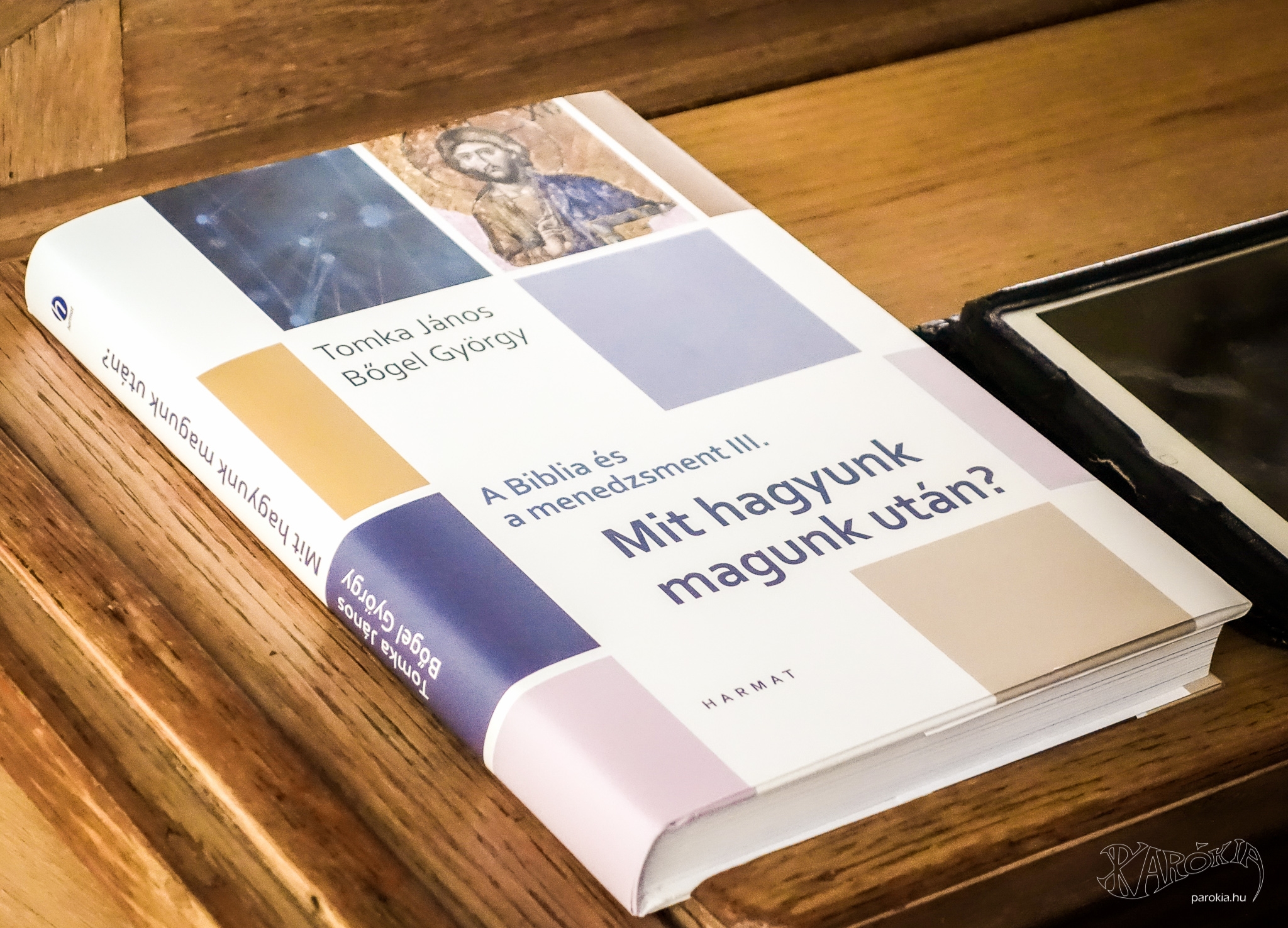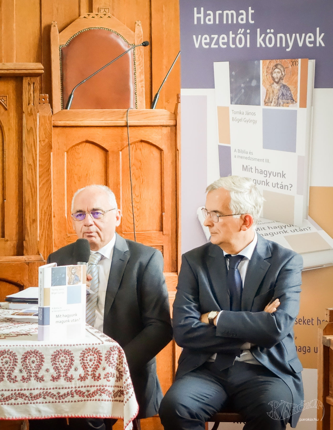 A Harmat Kiadó gondozásában nemrég megjelent Mit hagyunk magunk után? – A Biblia és a menedzsment című könyv harmadik kötetéről tartottak kerekasztalbeszélgetést a Református Zsinati Hivatal Dísztermében. Dr. Tomka János és dr. Bőgel György több éve kutatja azokat a vezetéstudományi összefüggéseket és mintákat, amelyek már több ezer évvel ezelőtt felfedezhetők voltak, mindezt a Bibliát vizsgálva. Az infokommunikációs technológia látványos fejlődéséről, az üzleti életnek és az etikának a jövőre kiható égető kérdéseiről a szerzőpáros mellett dr. Nemes Ferenc, a vezetéstudomány professor emeritusa, az MTA doktora, dr. Szebik Imre nyugalmazott evangélikus püspök, valamint Reményi Csaba, az Oracle Hungary cégvezetője beszélgetett egymással, szeptember 21-én. A Biblia és a menedzsment-trilógia harmadik kötete a modern kori vezetői dilemmák bemutatása mellett bibliai történetek tanulságaival kíván segítséget nyújtani a döntési helyzetekben.