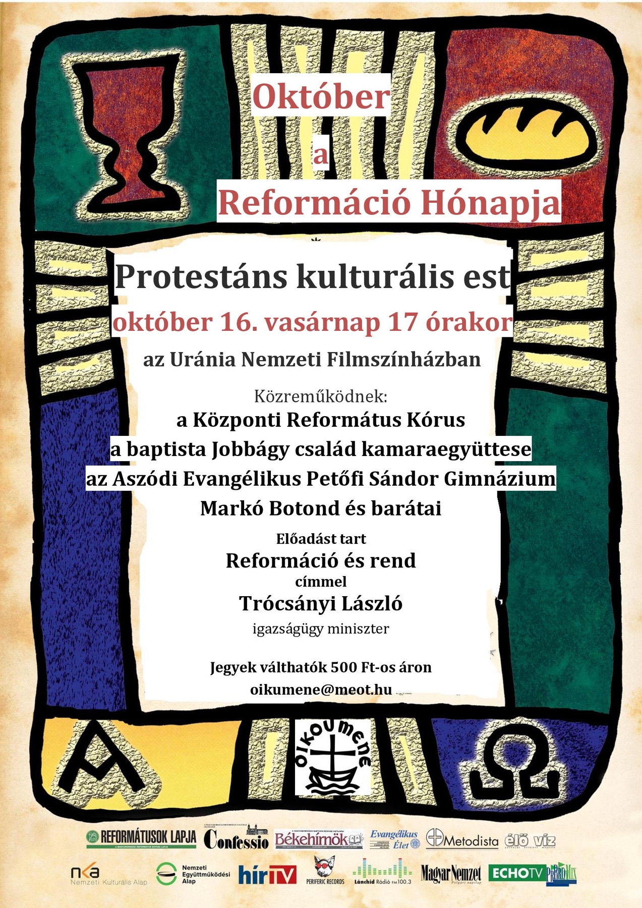 Protestáns kulturális est 0 hozzászólás Időpont: 2016. október 16. 17:00 Helyszín: Uránia Nemzeti Filmszínház Programok Reformáció Hónapja programsorozat
